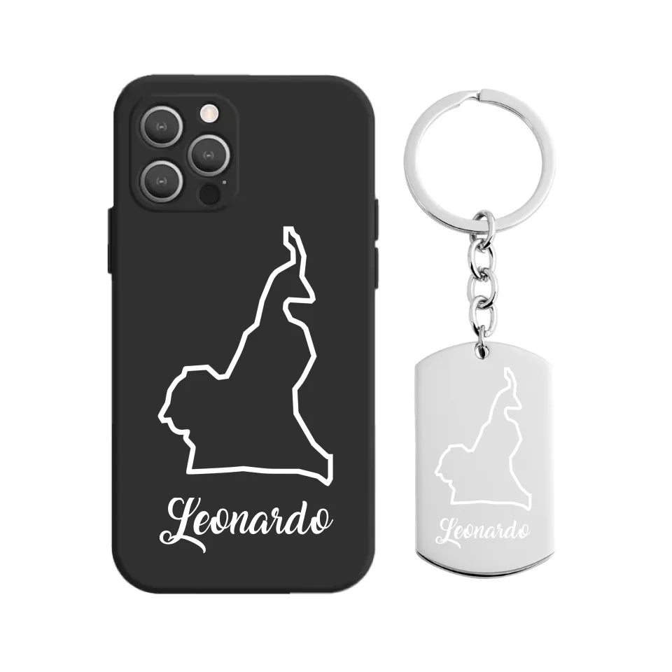 Kamerun Umriss Handyhülle mit Schlüsselanhänger inkl. Wunschname