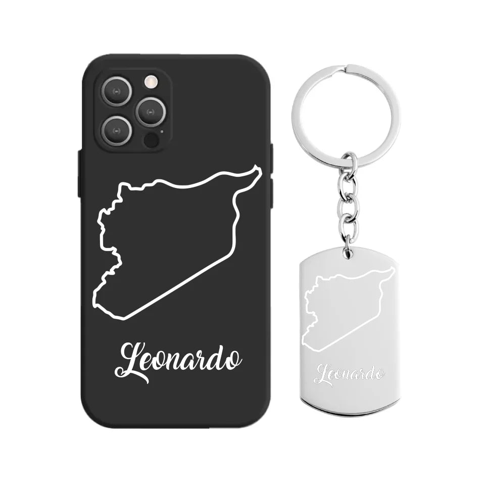 Syrien Umriss Handyhülle mit Schlüsselanhänger inkl. Wunschname