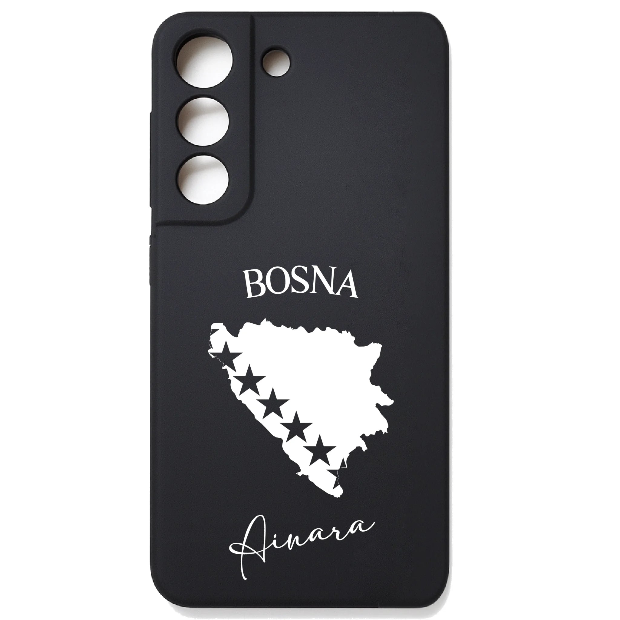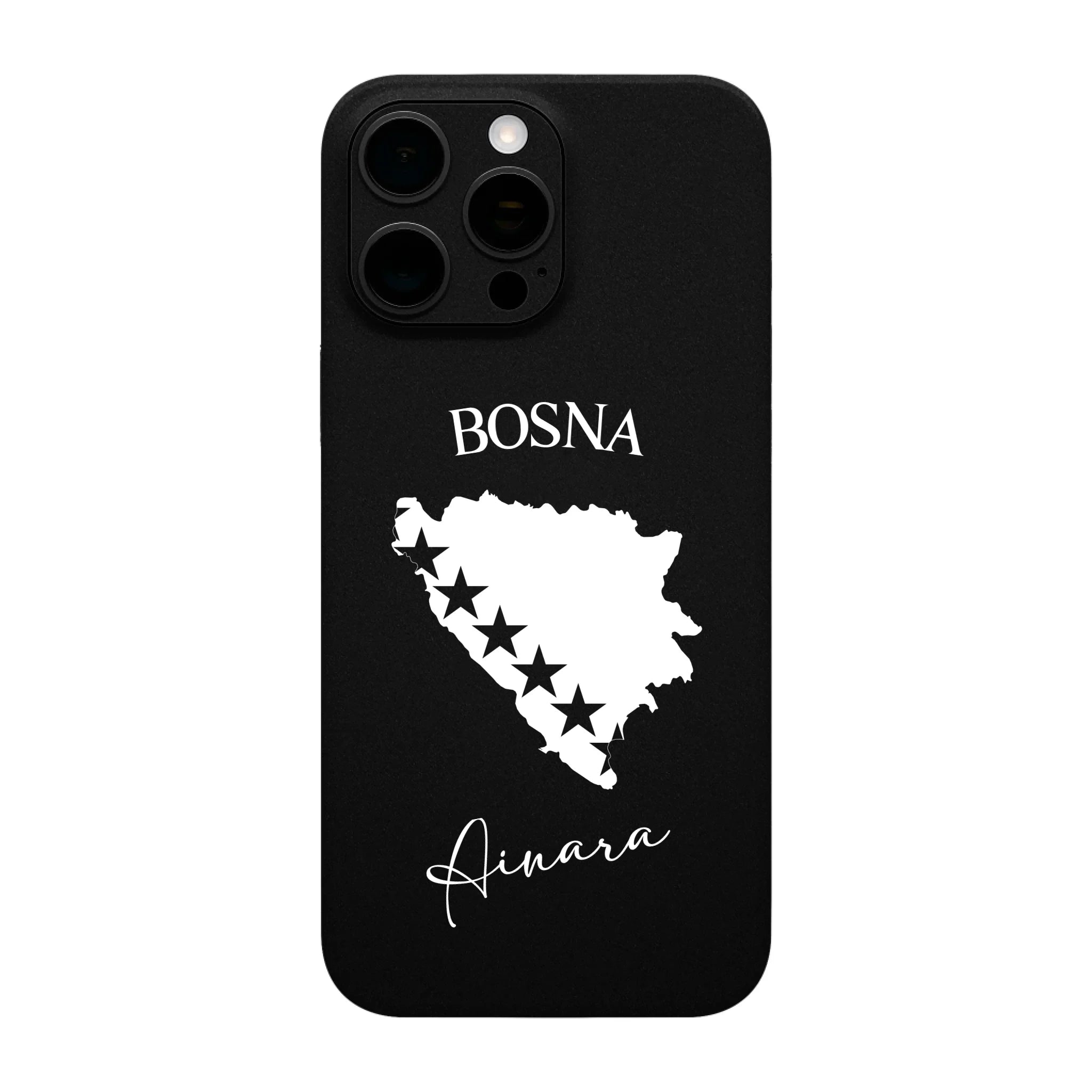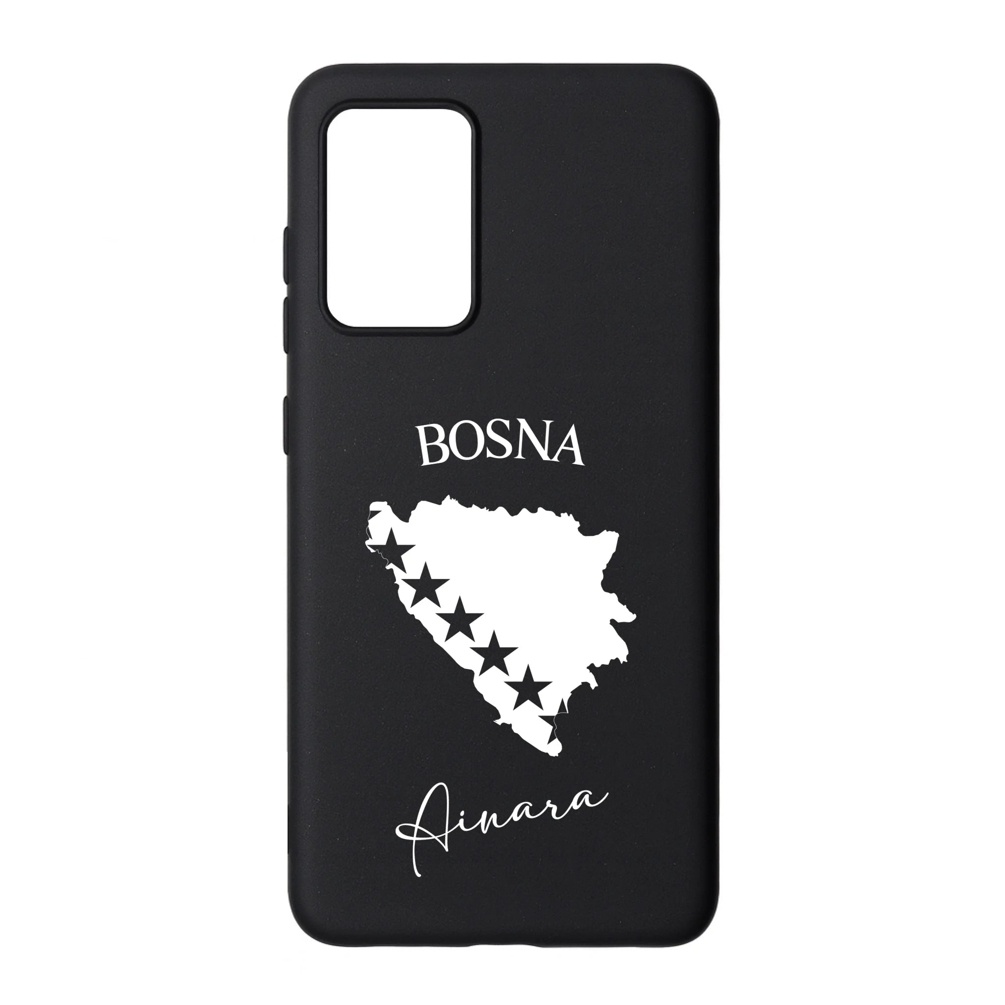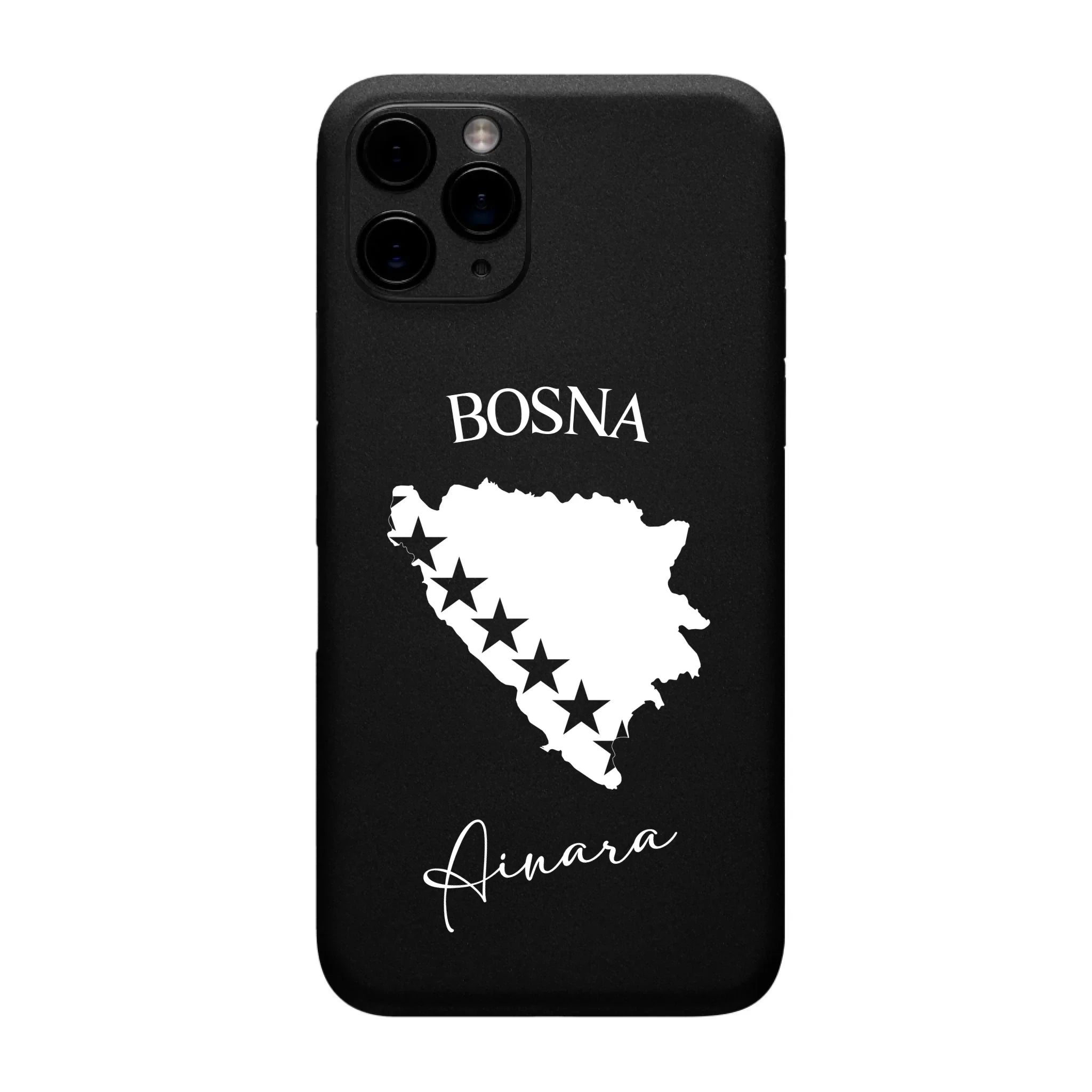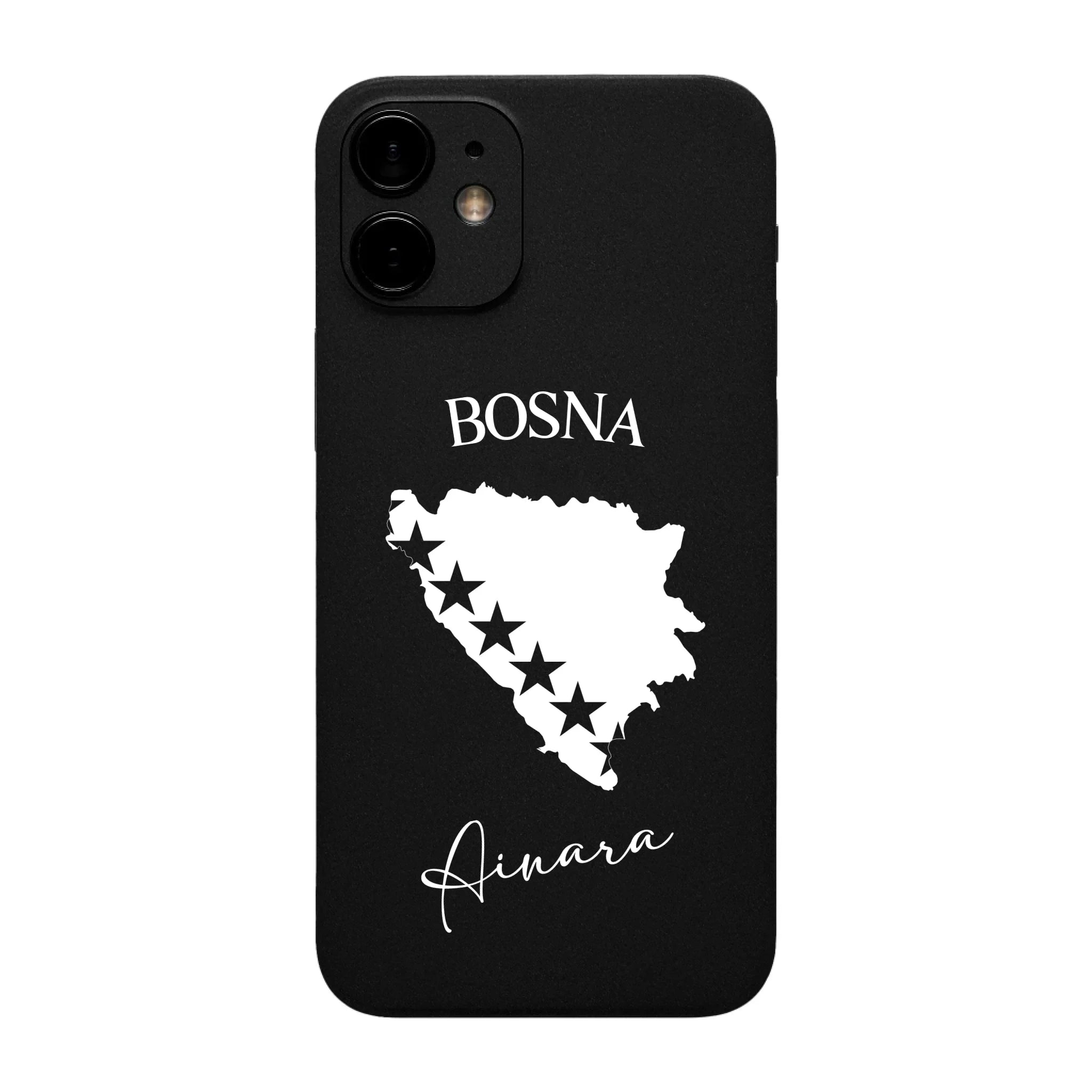 Produktbeschreibung: Personalisierte Silikon Handyhülle mit Bosnien Umriss und Wunschname