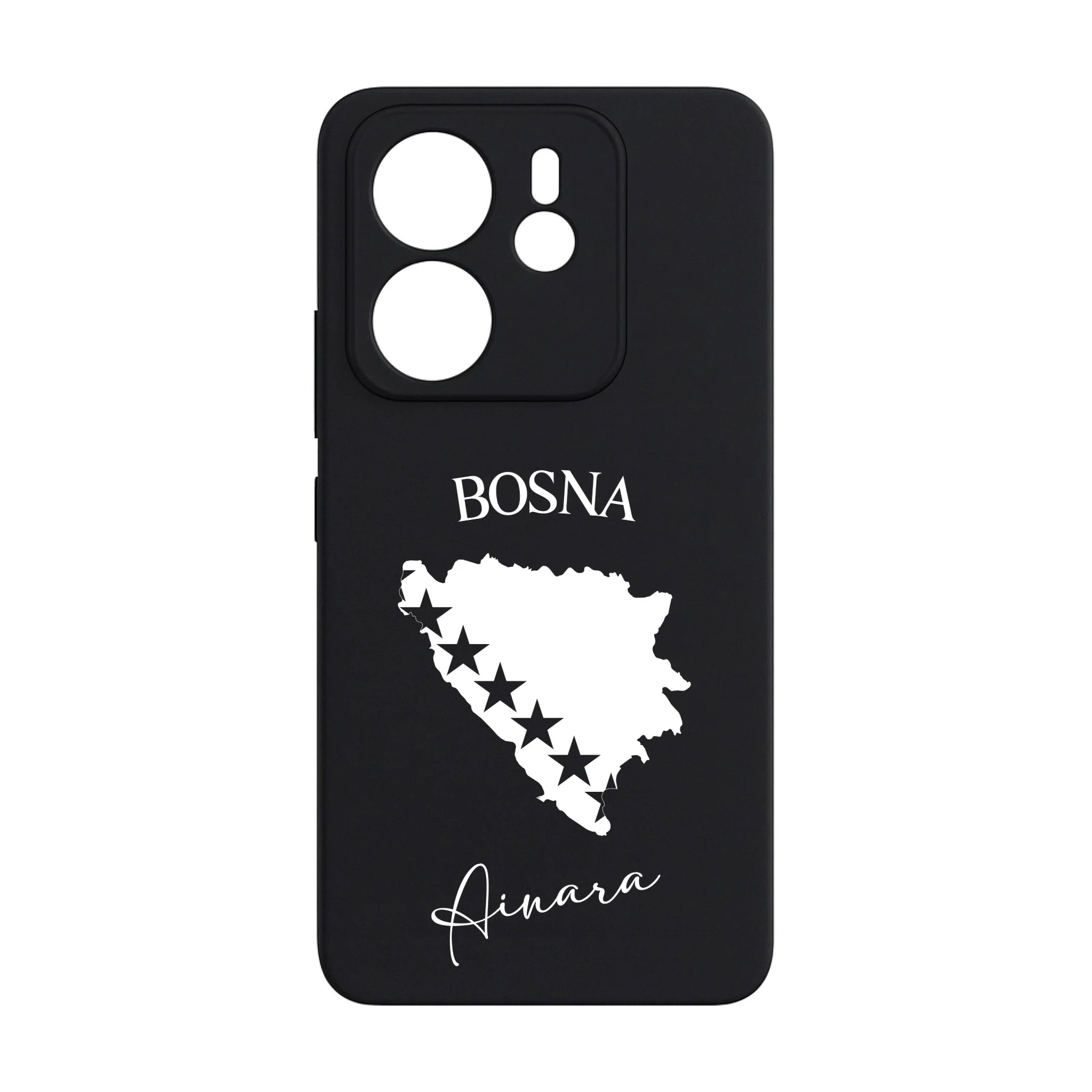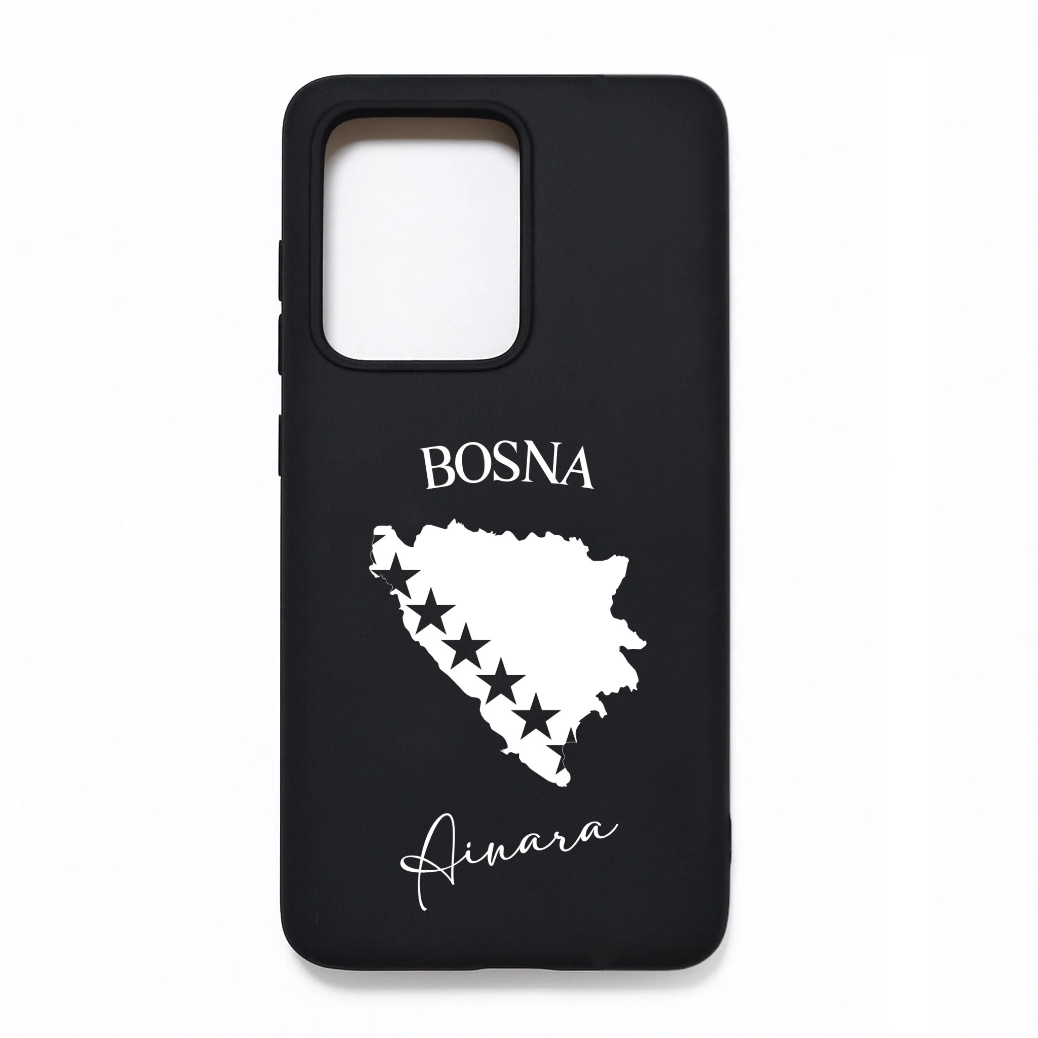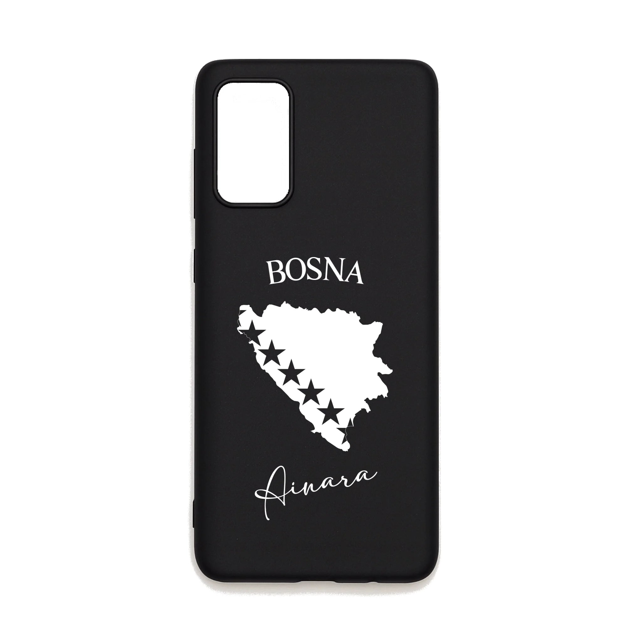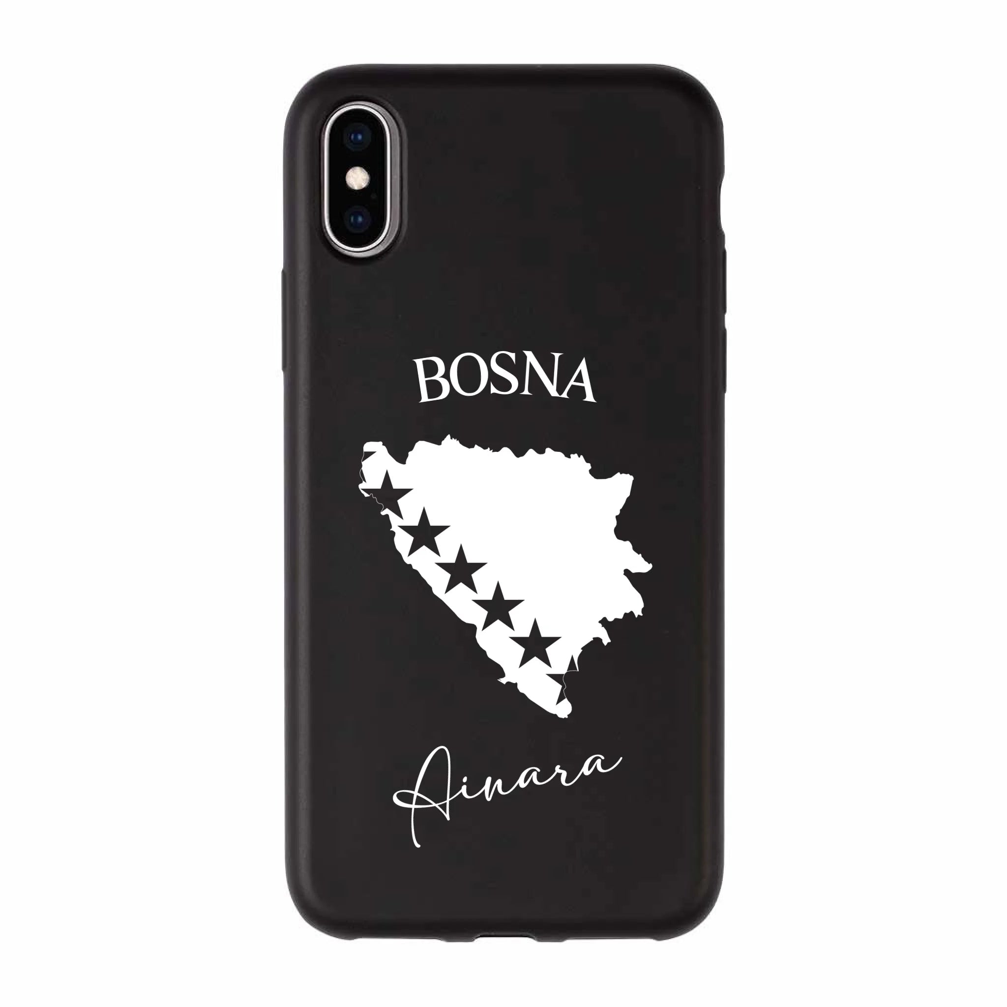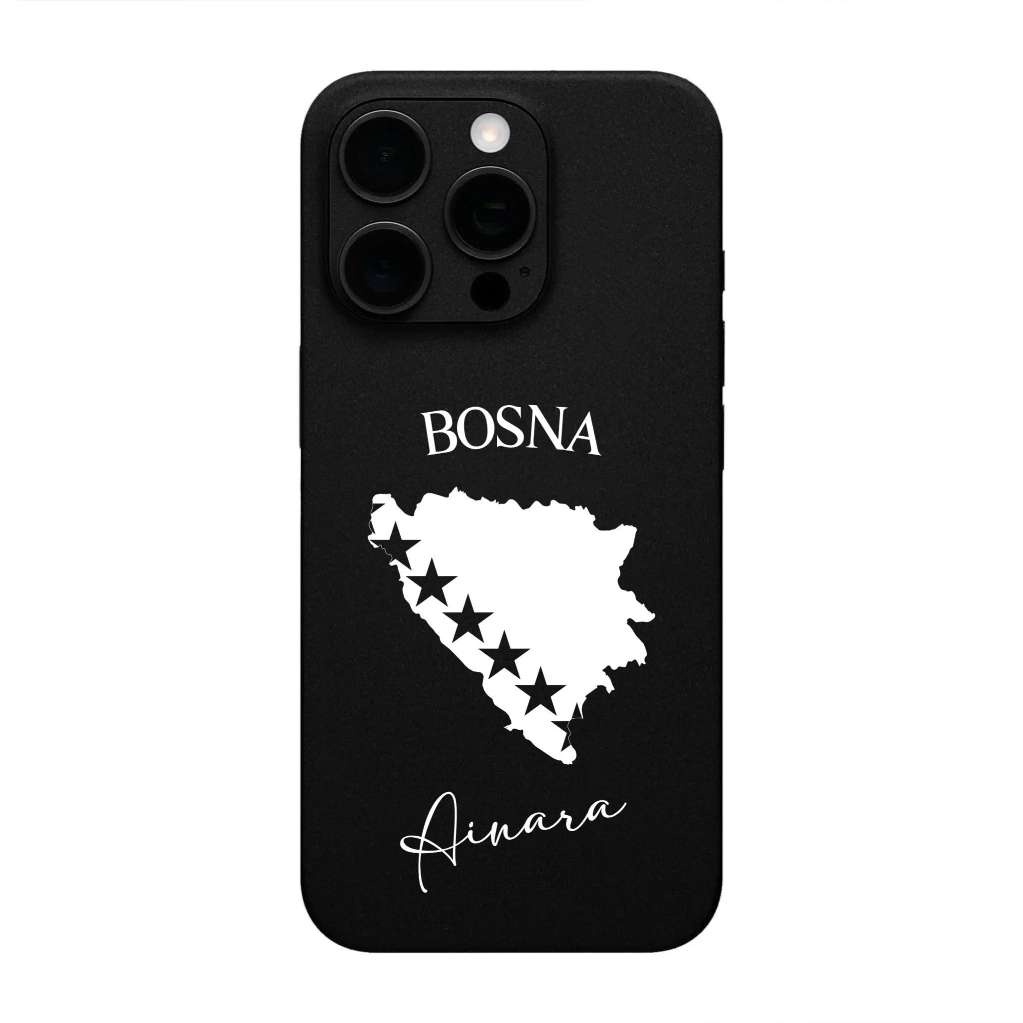 Produktbeschreibung: Personalisierte Silikon Handyhülle mit Bosnien Umriss und Wunschname