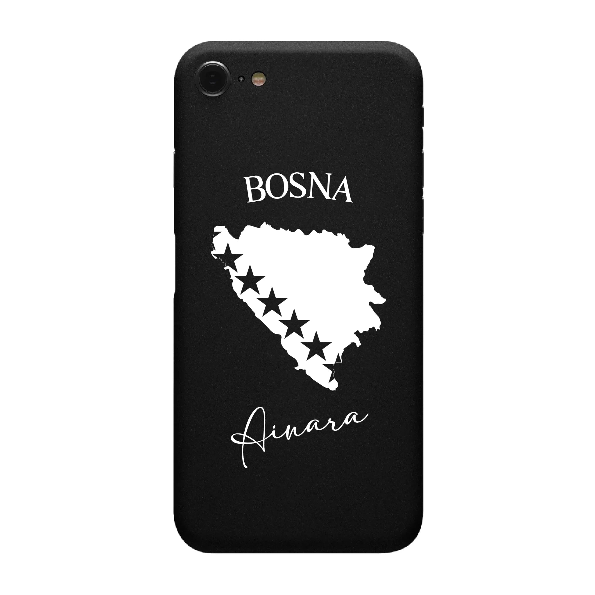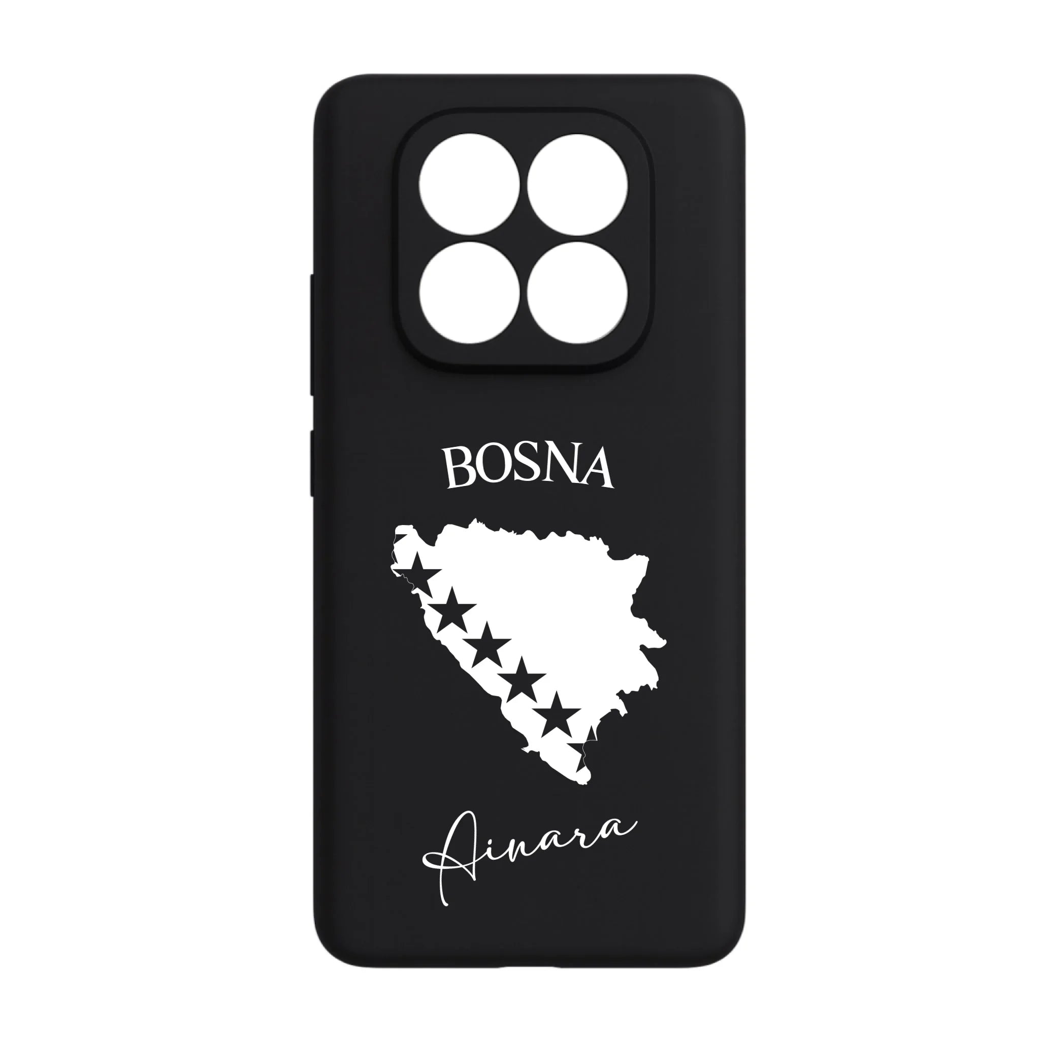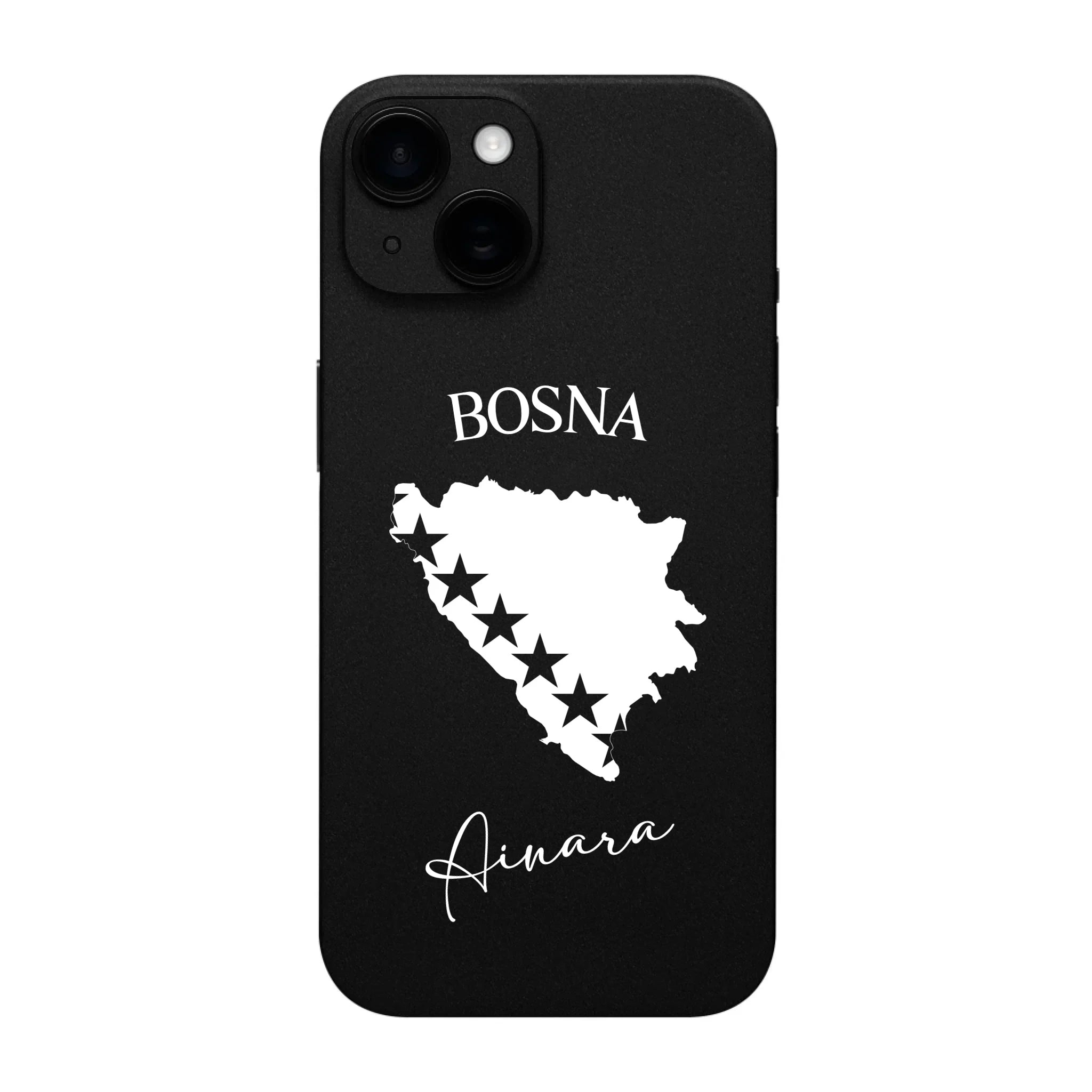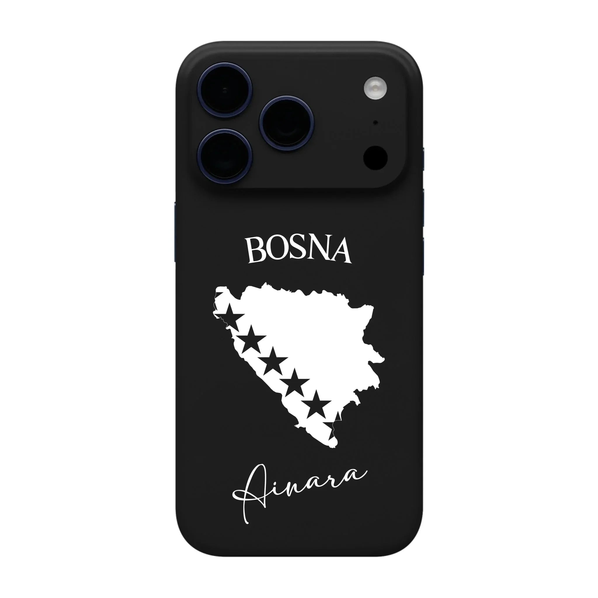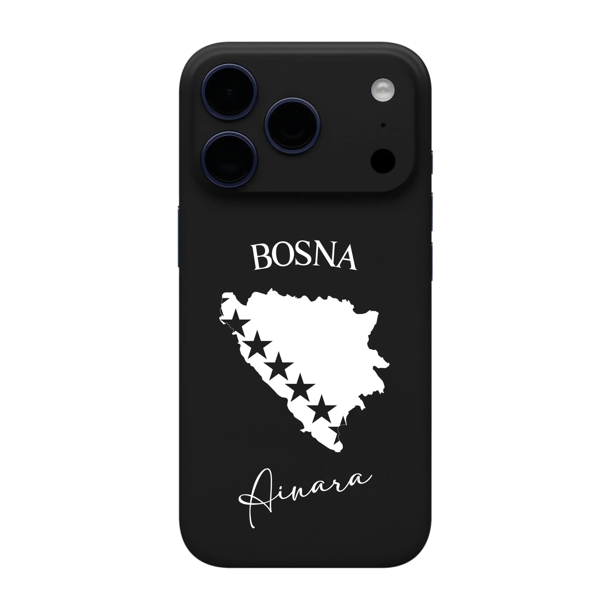 Produktbeschreibung: Personalisierte Silikon Handyhülle mit Bosnien Umriss und Wunschname