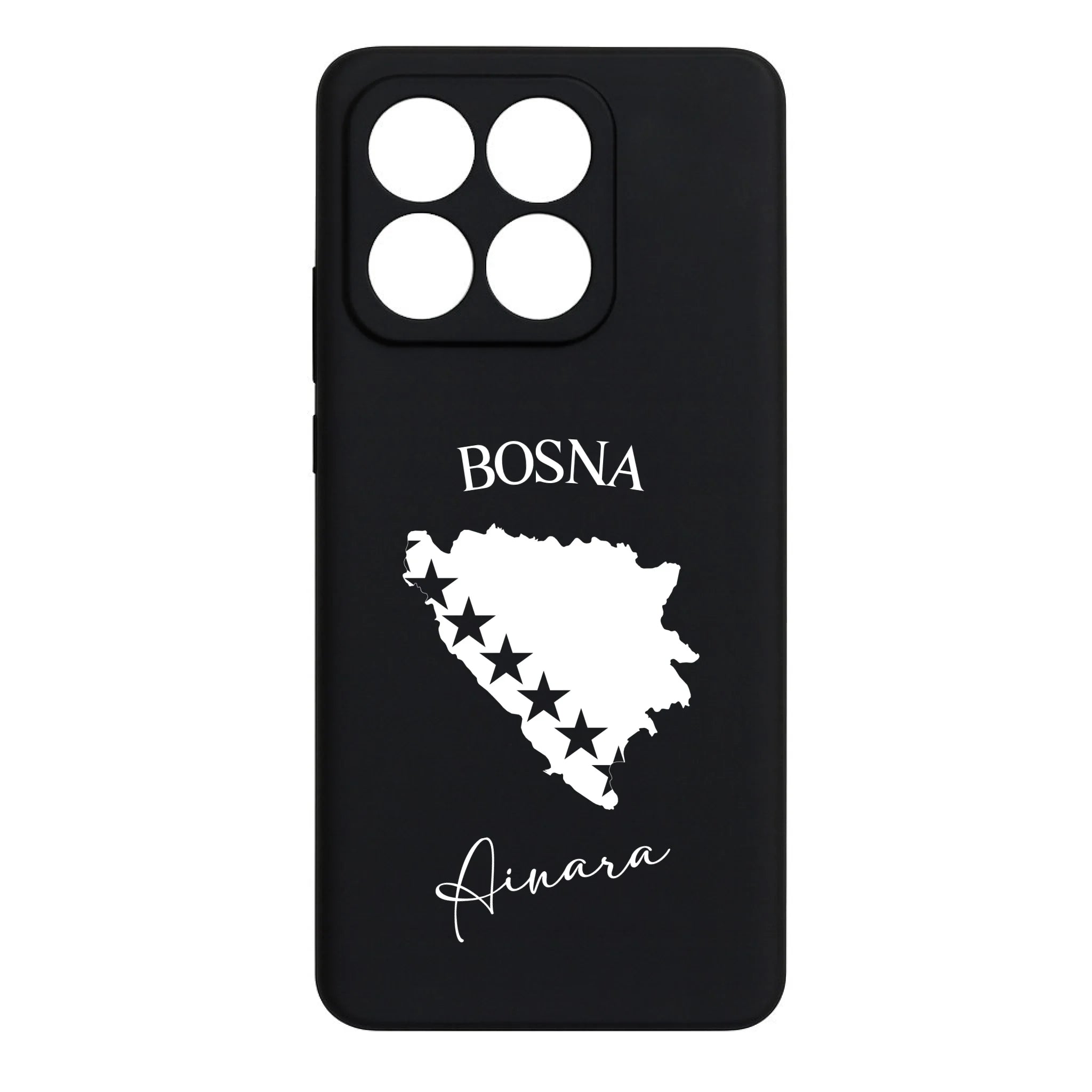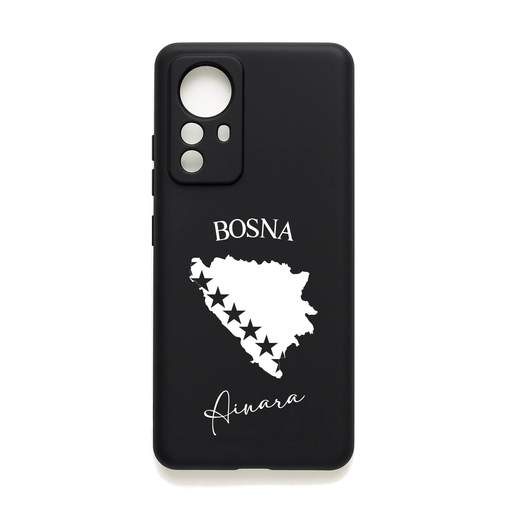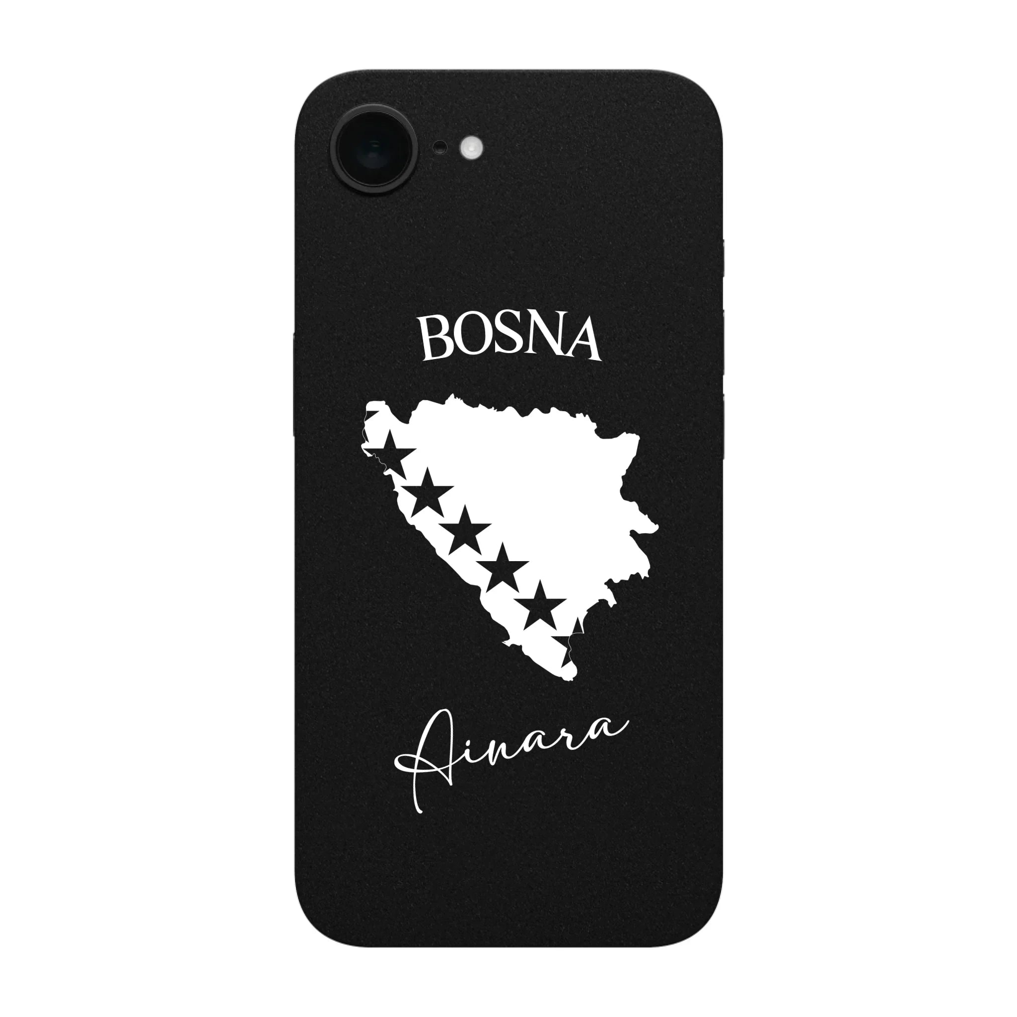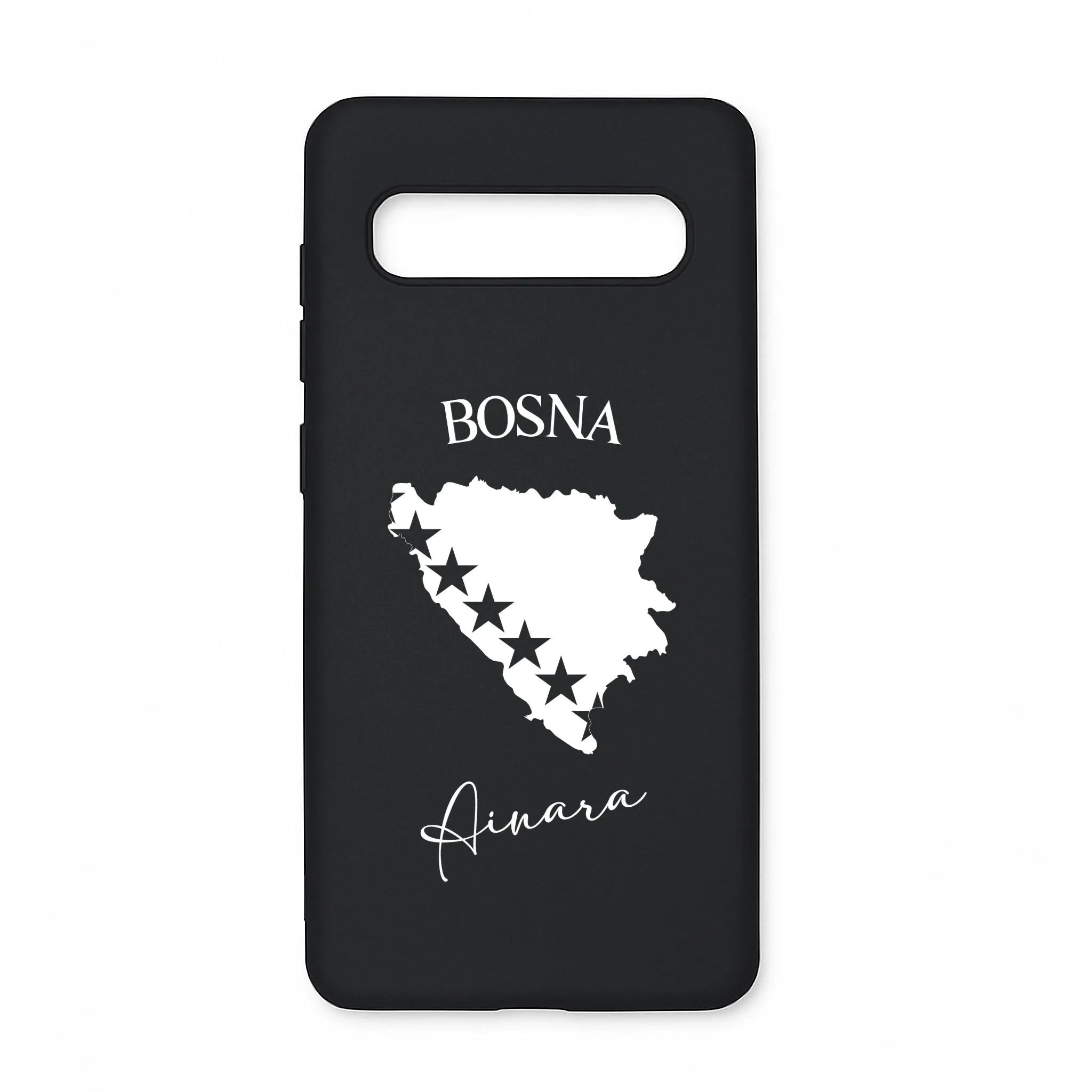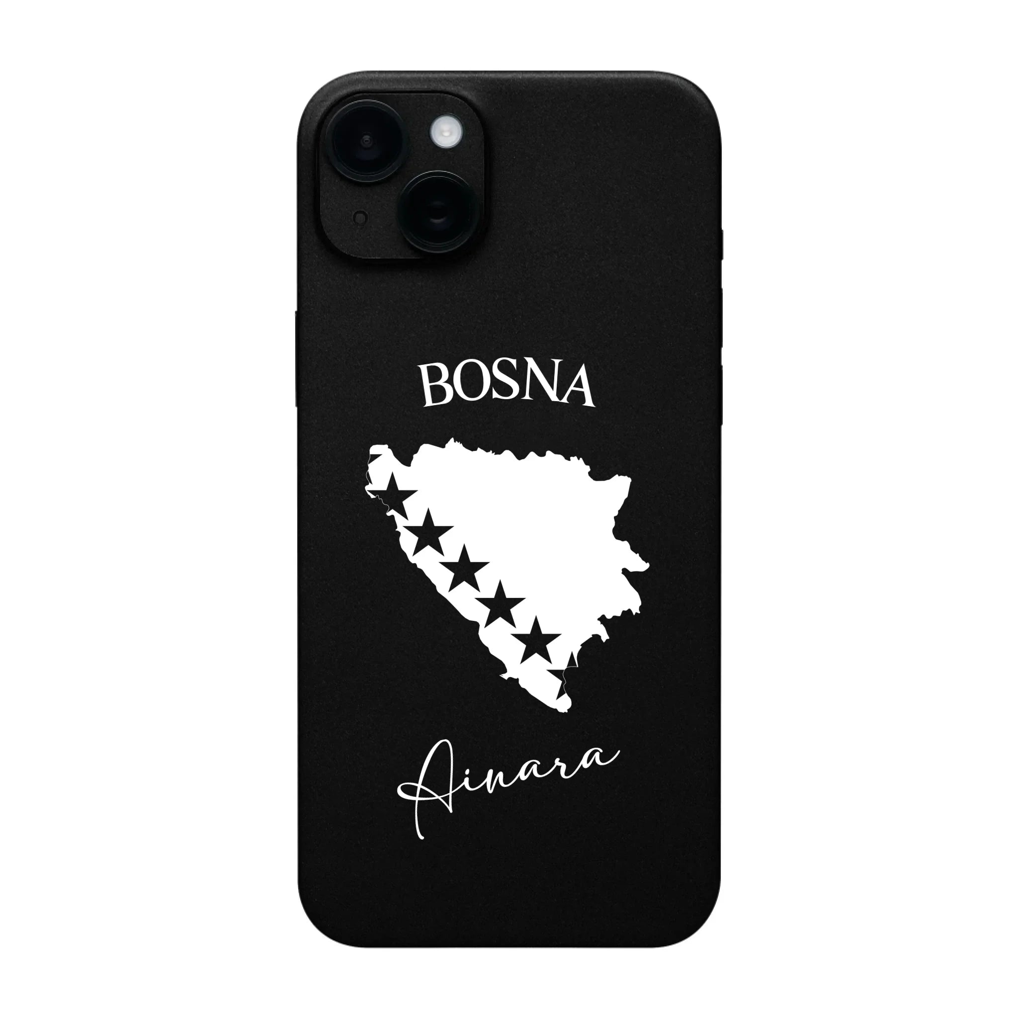 Produktbeschreibung: Personalisierte Silikon Handyhülle mit Bosnien Umriss und Wunschname