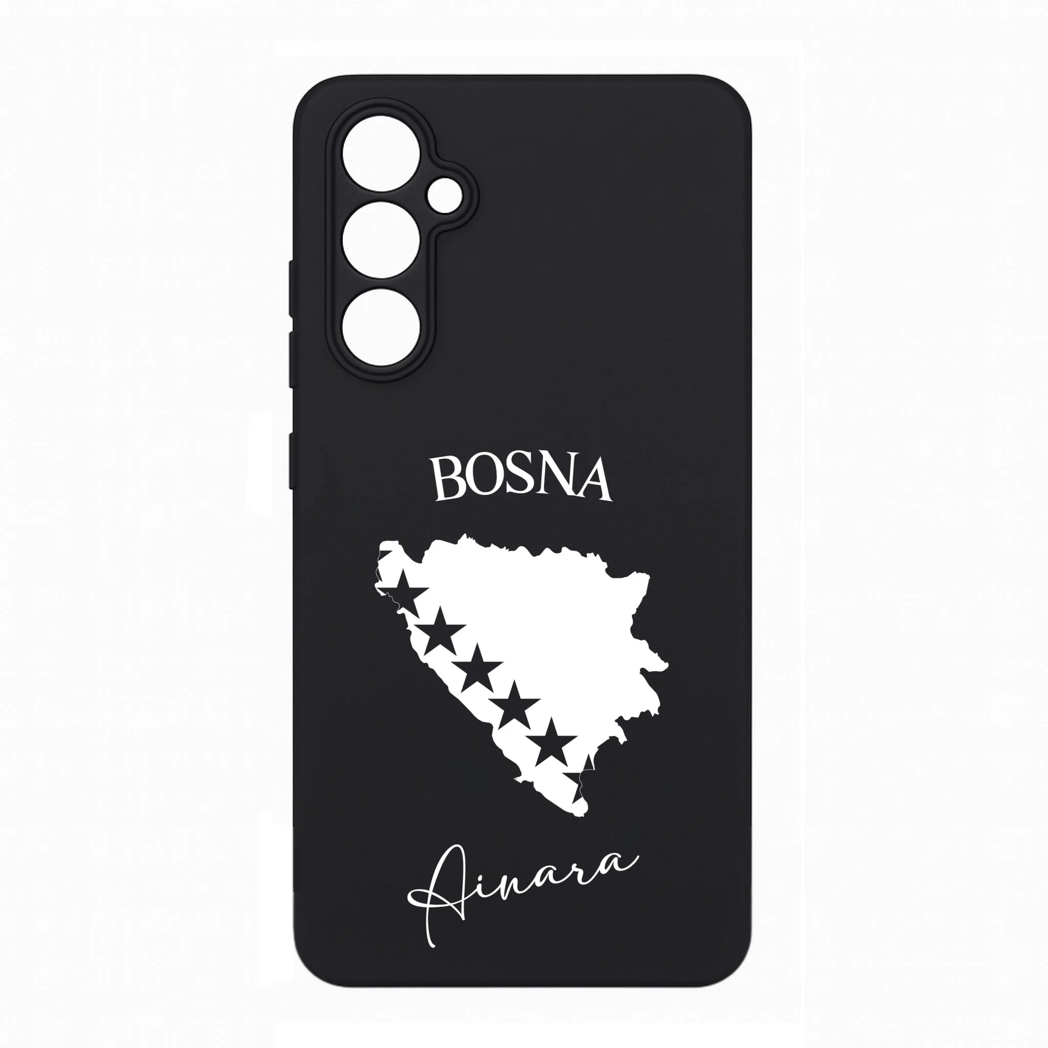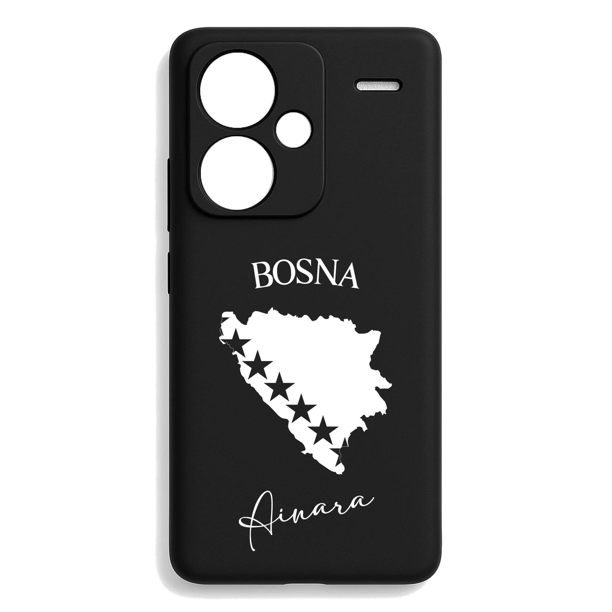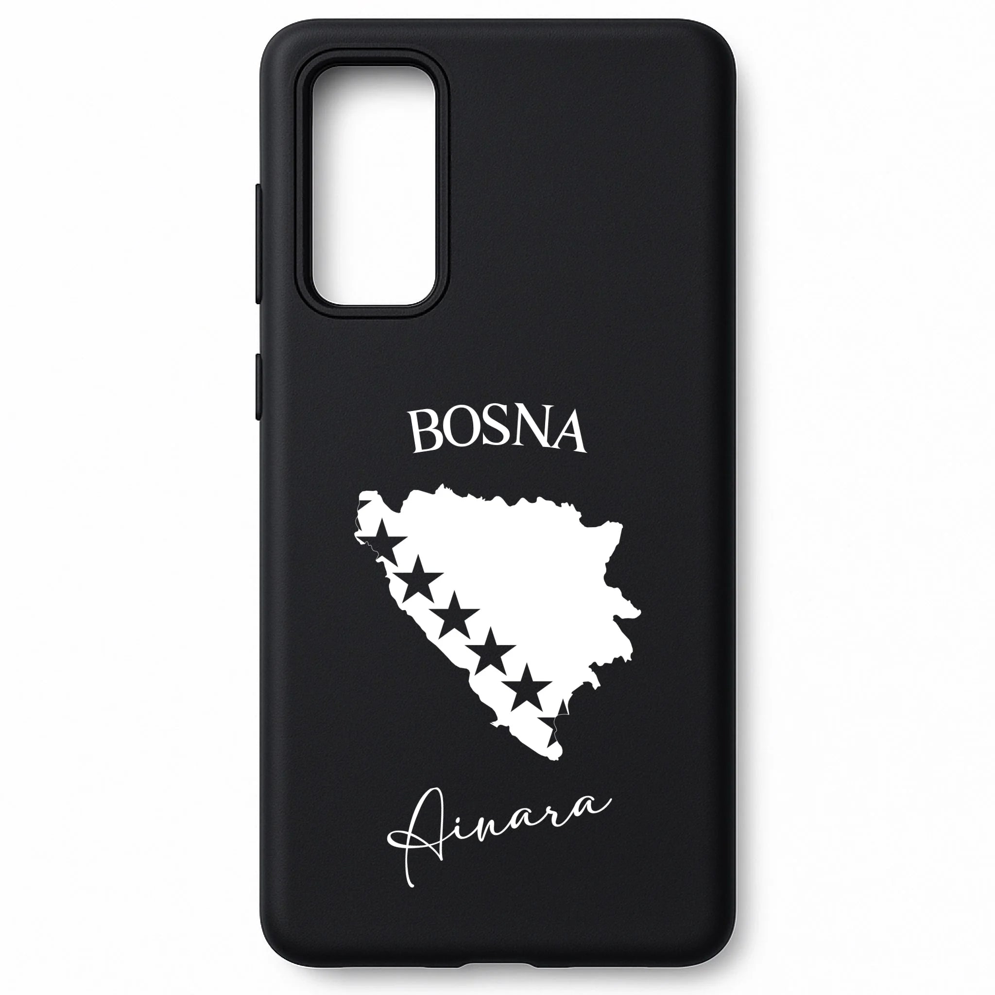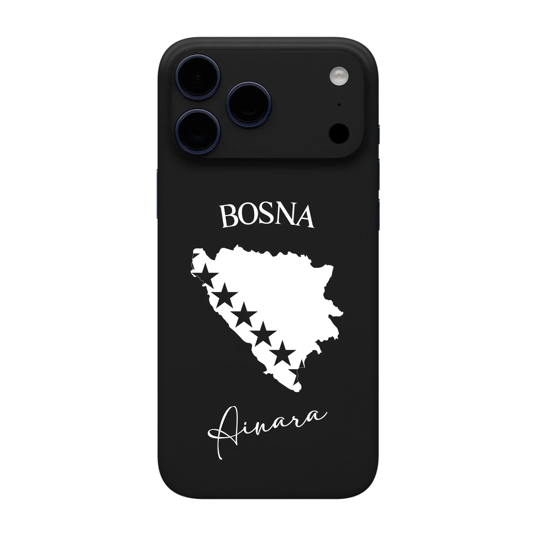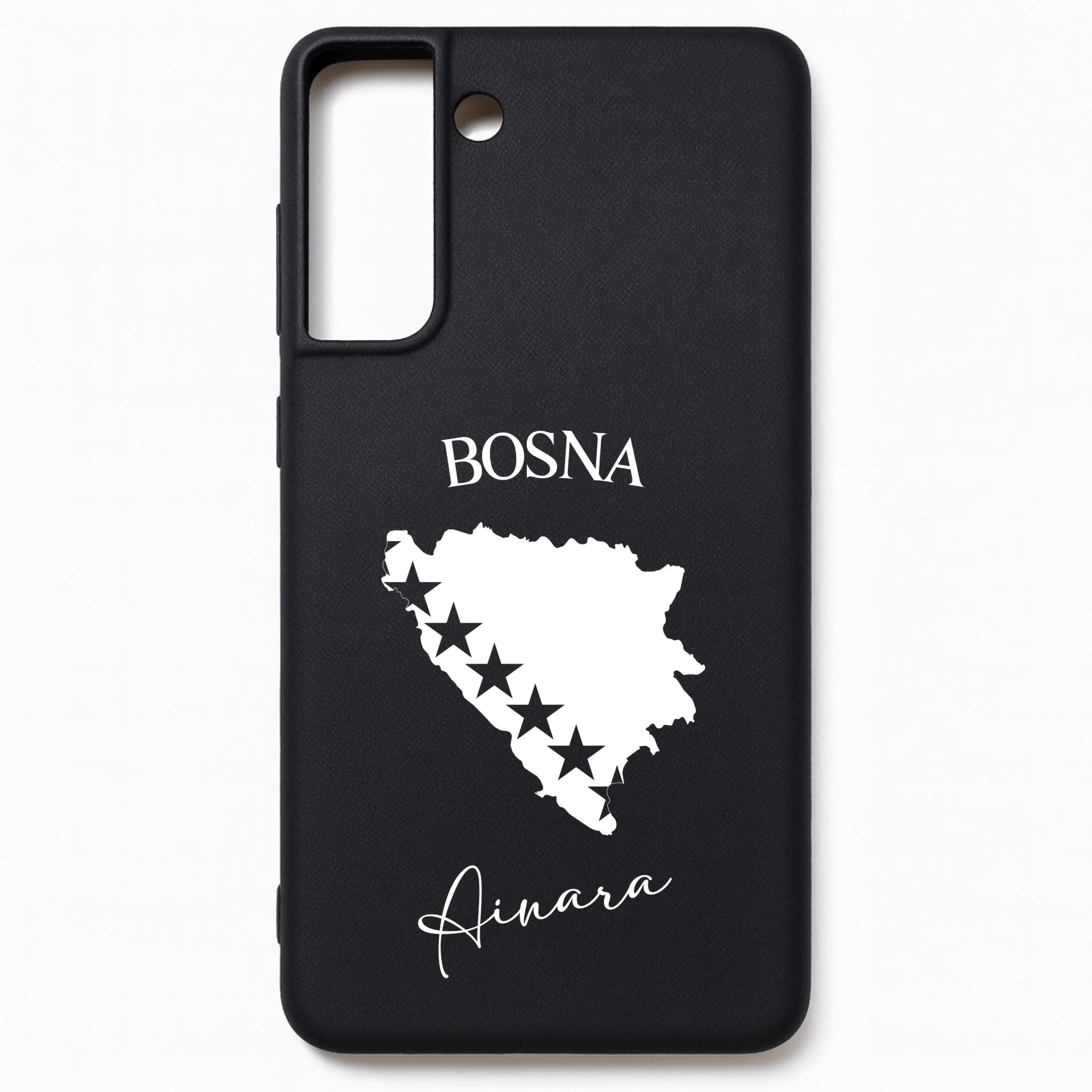Produktbeschreibung: Personalisierte Silikon Handyhülle mit Bosnien Umriss und Wunschname