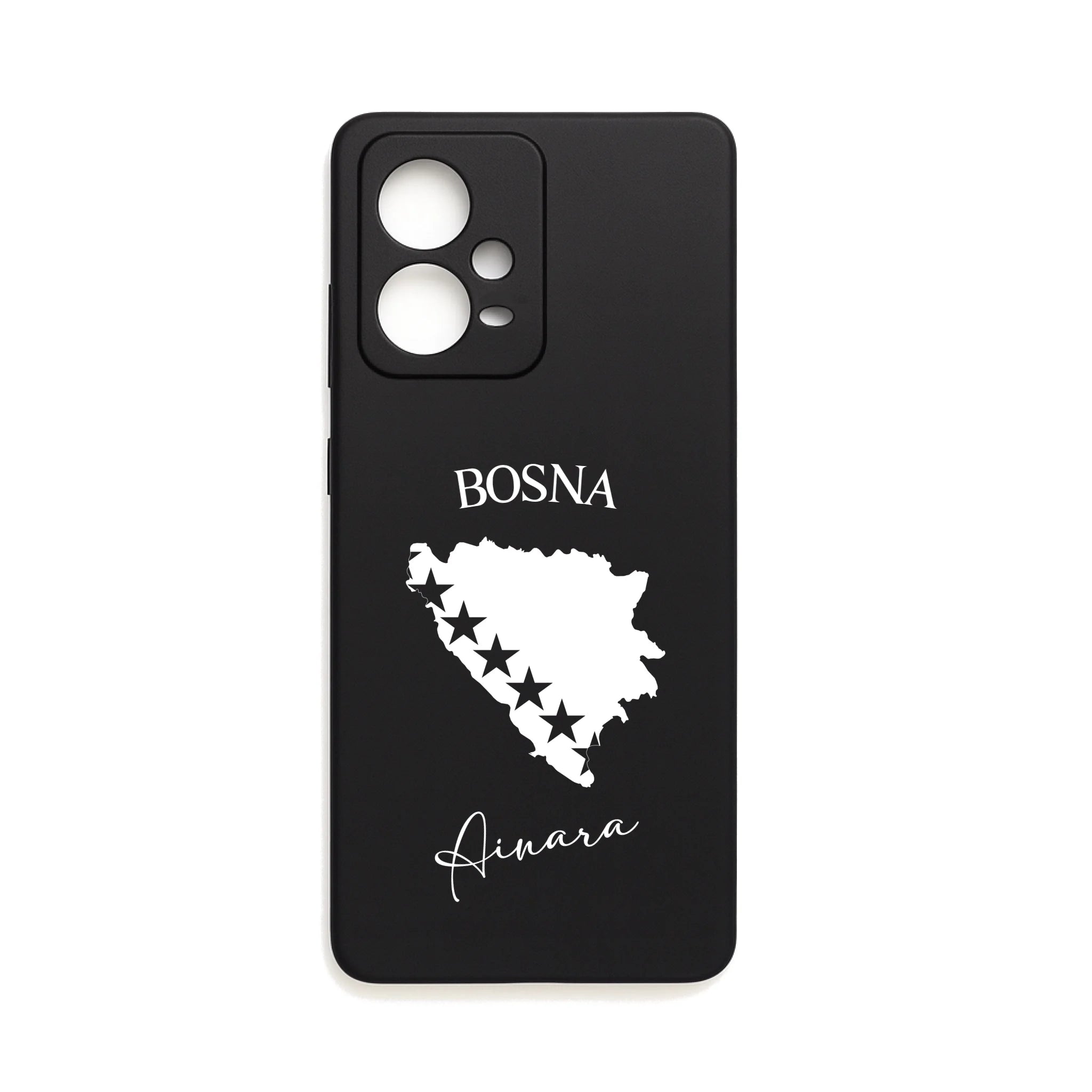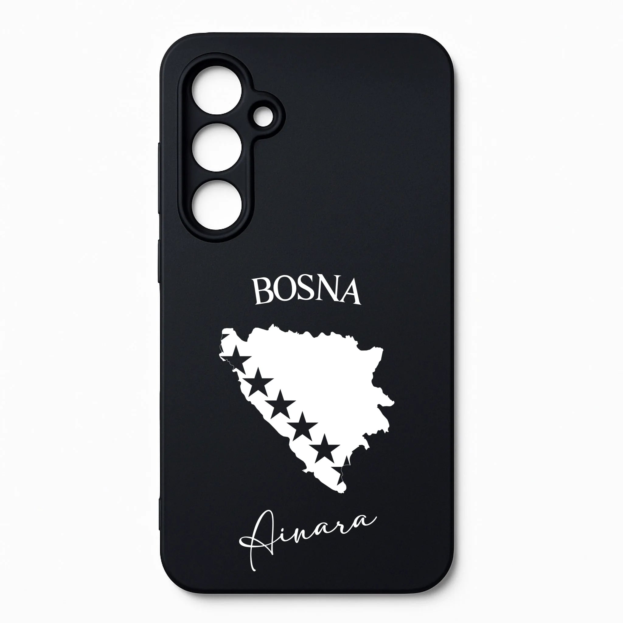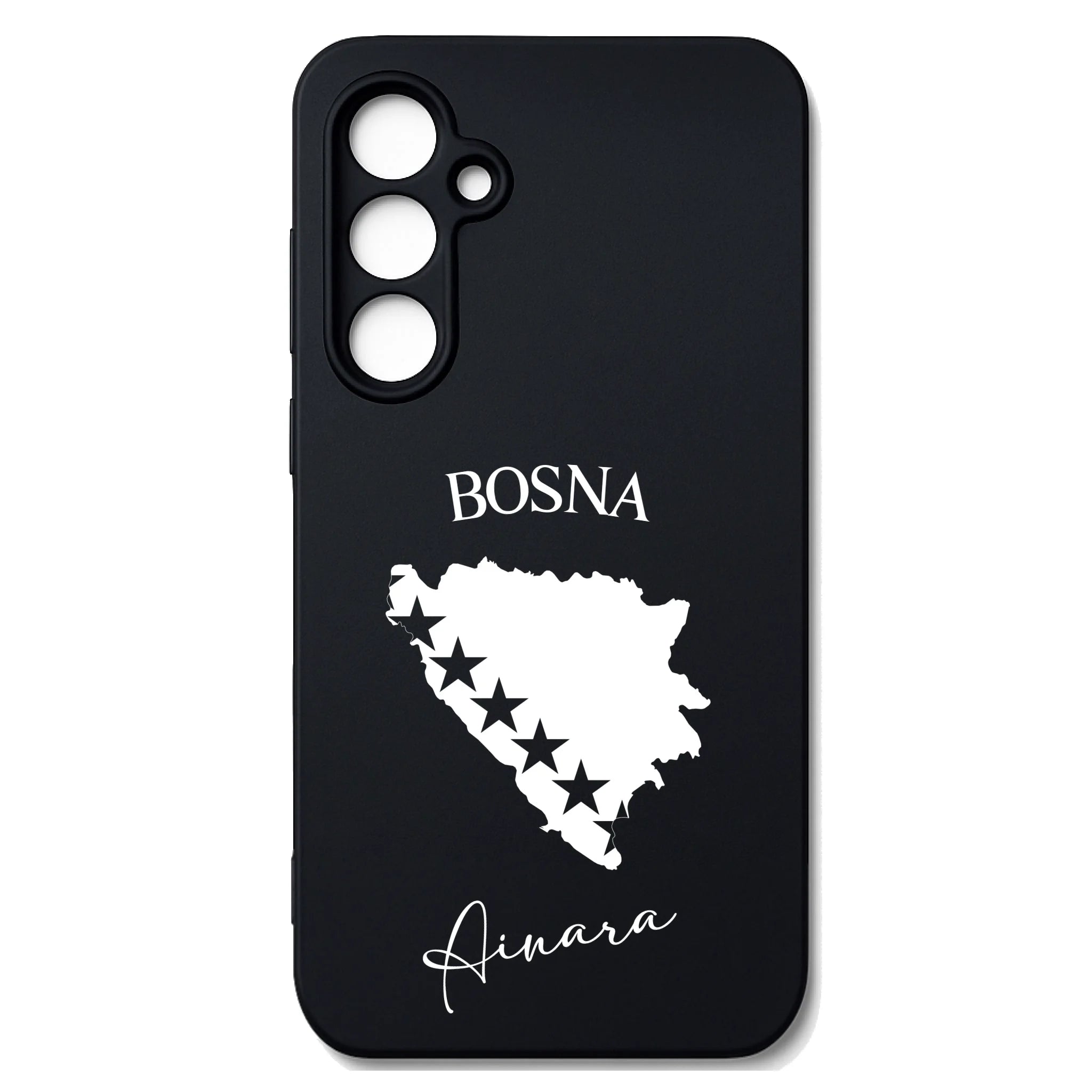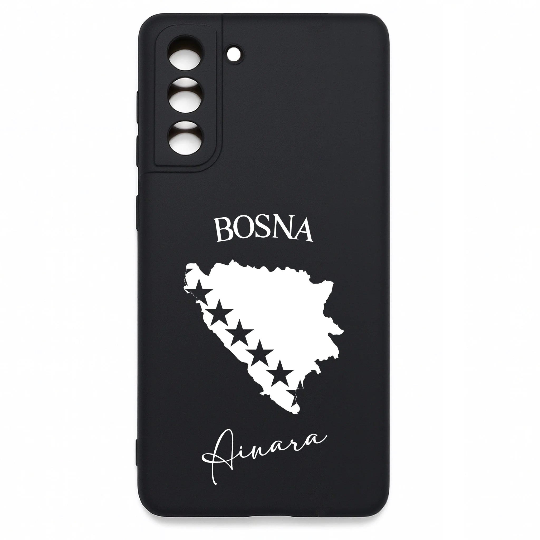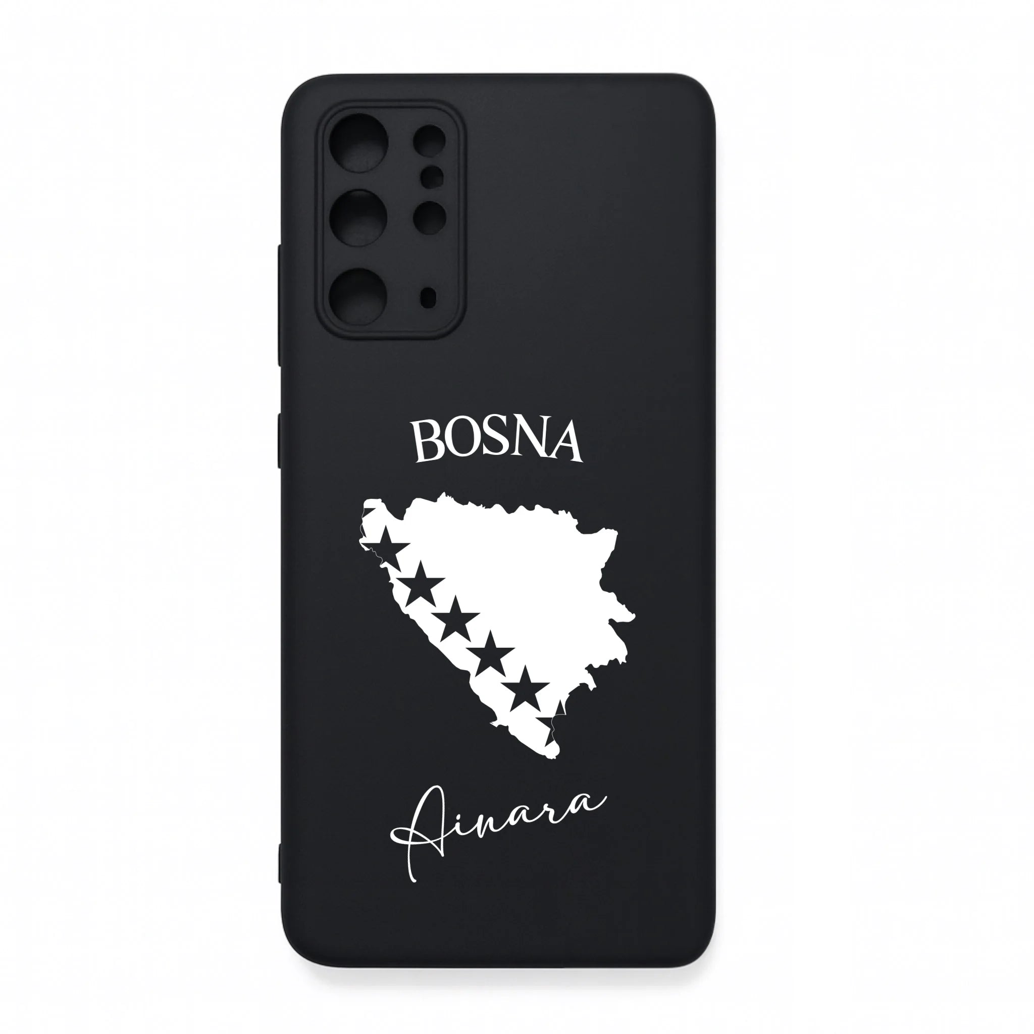 Produktbeschreibung: Personalisierte Silikon Handyhülle mit Bosnien Umriss und Wunschname