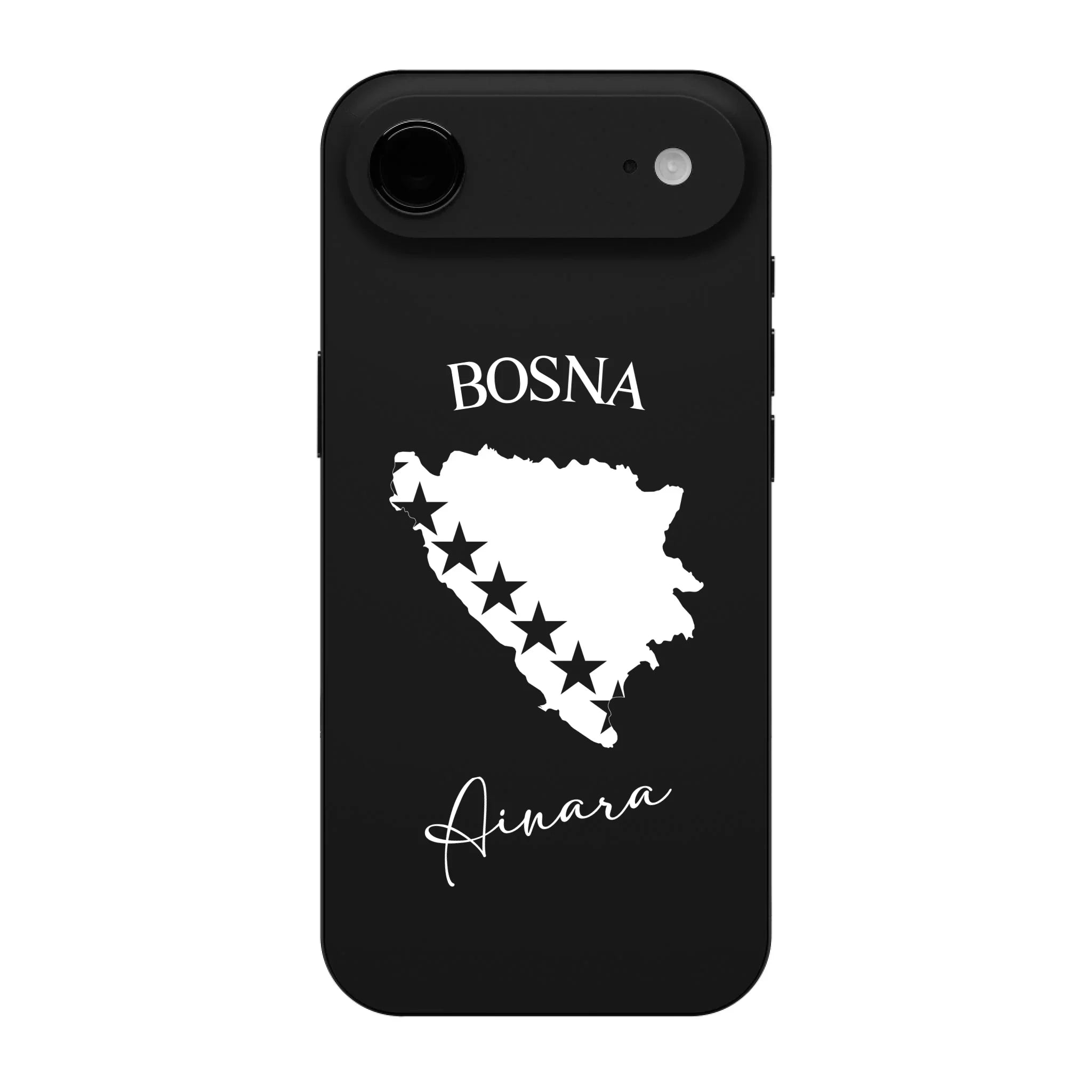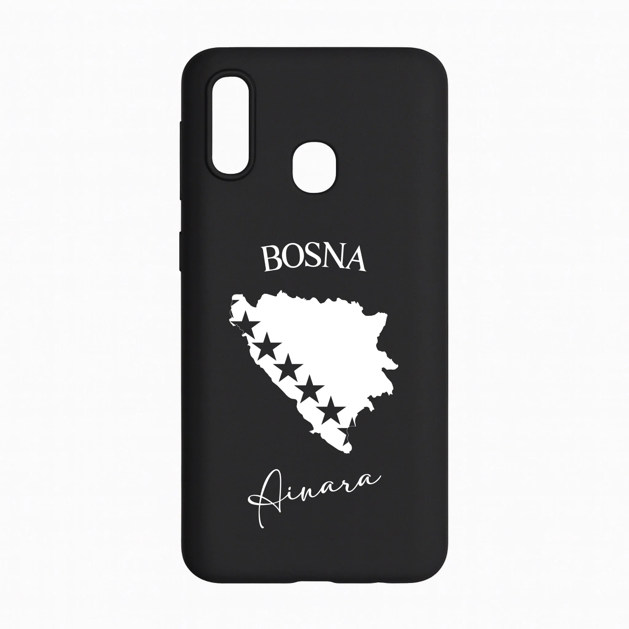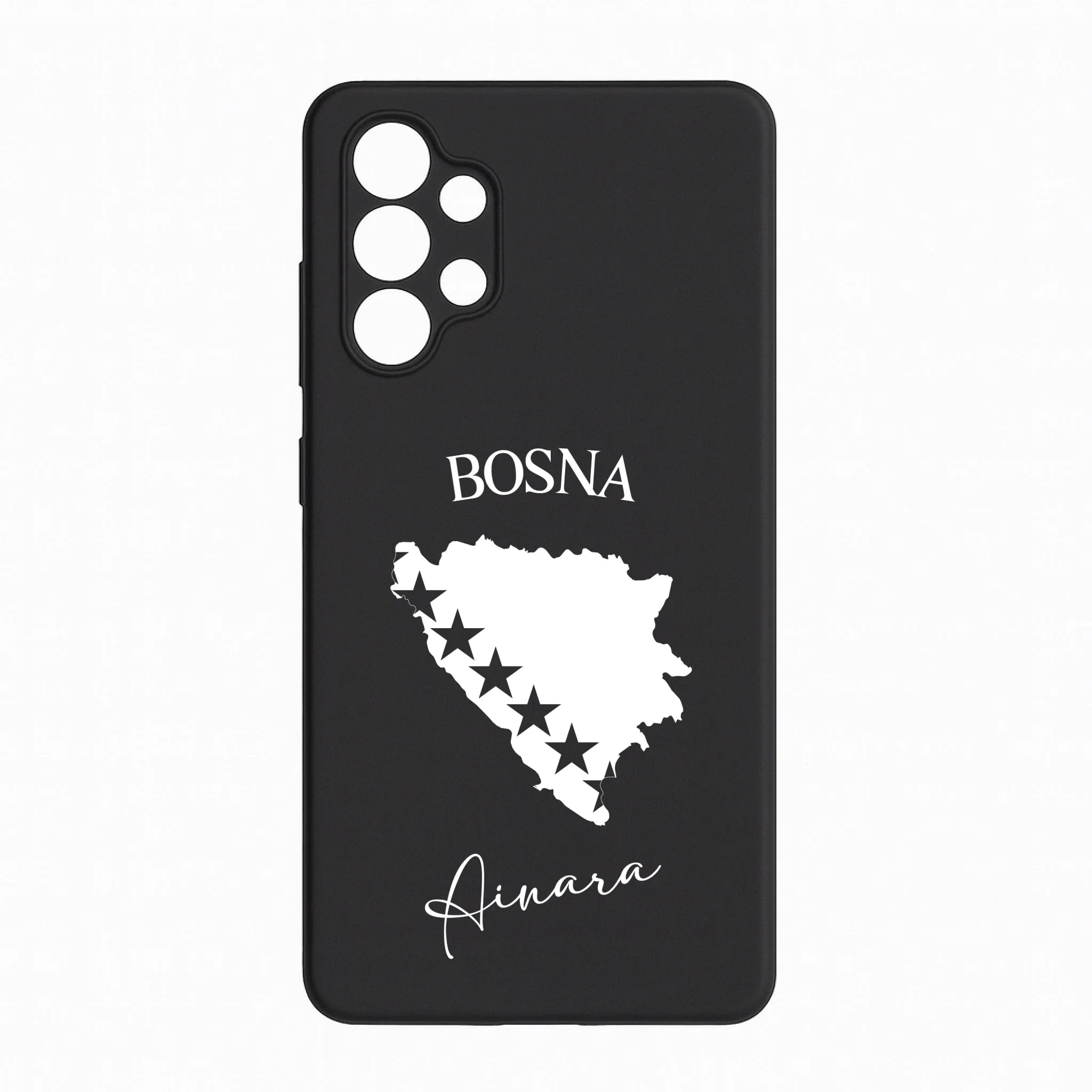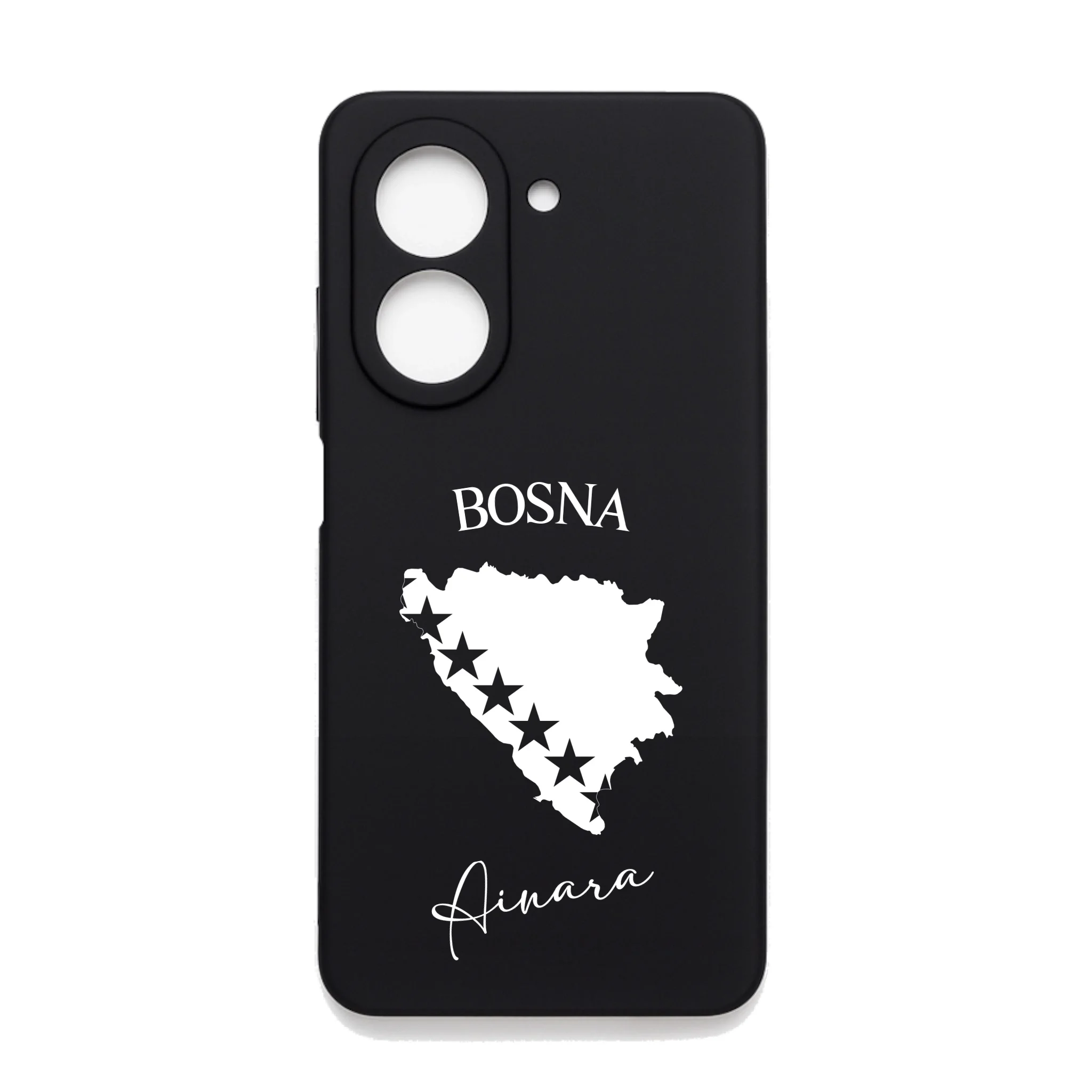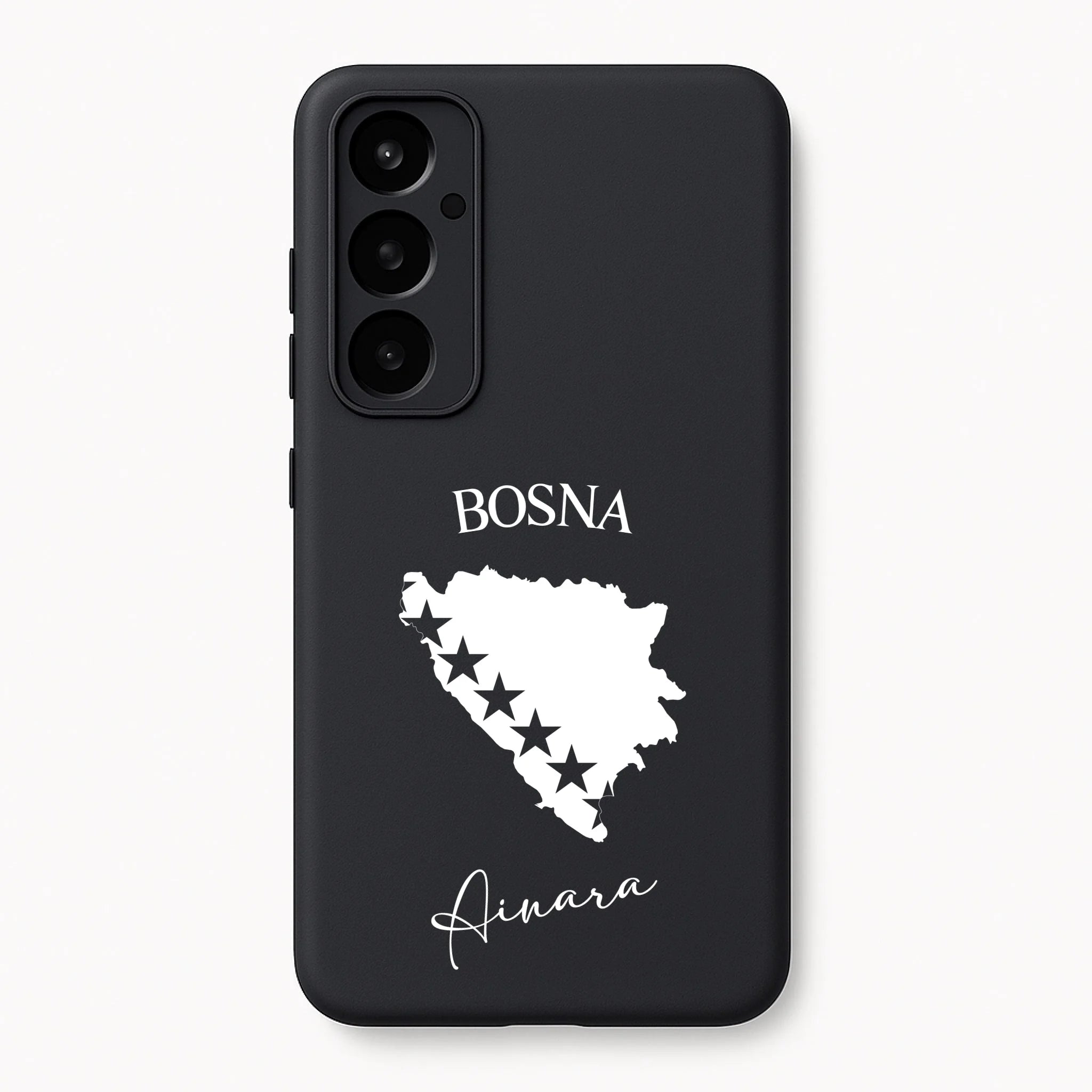 Produktbeschreibung: Personalisierte Silikon Handyhülle mit Bosnien Umriss und Wunschname