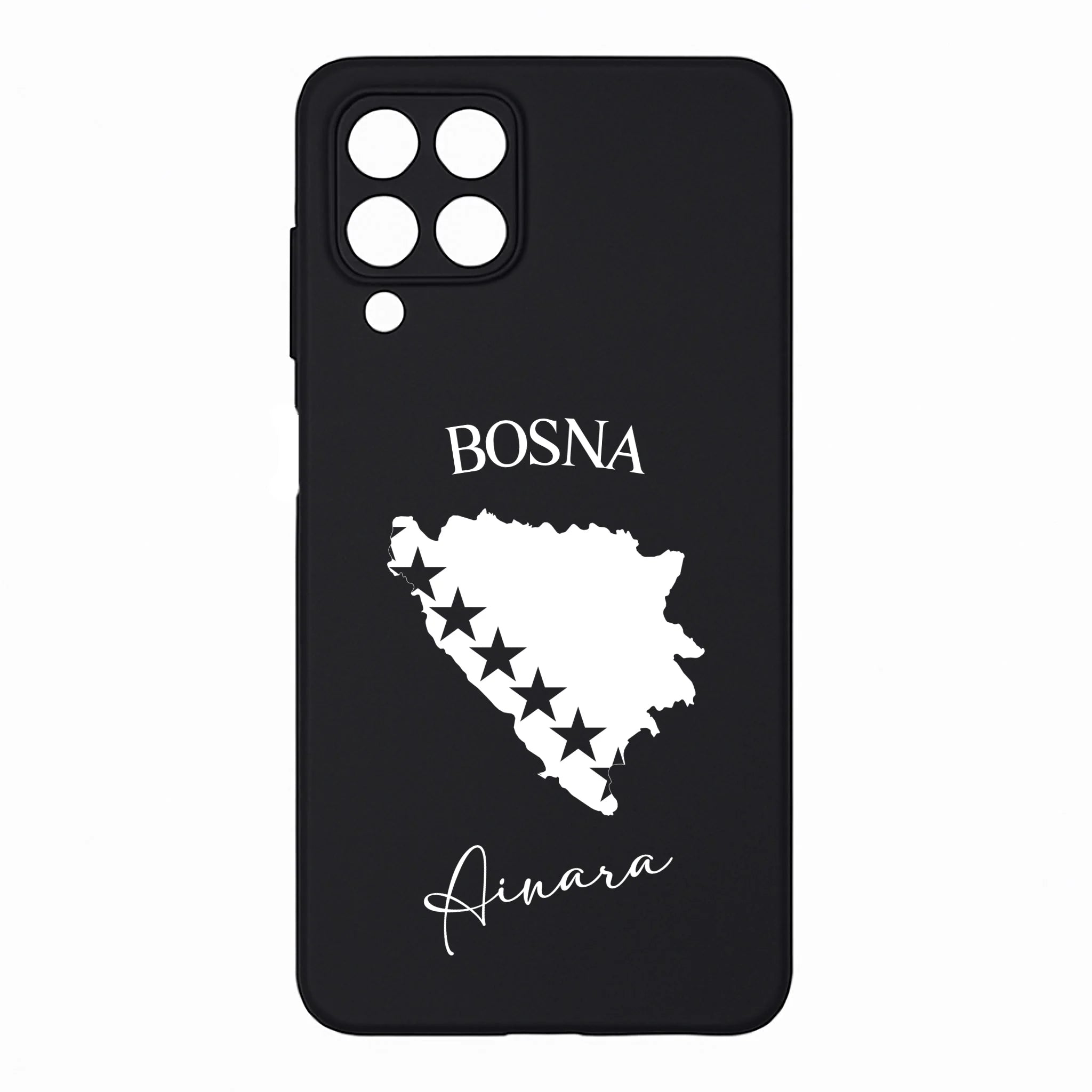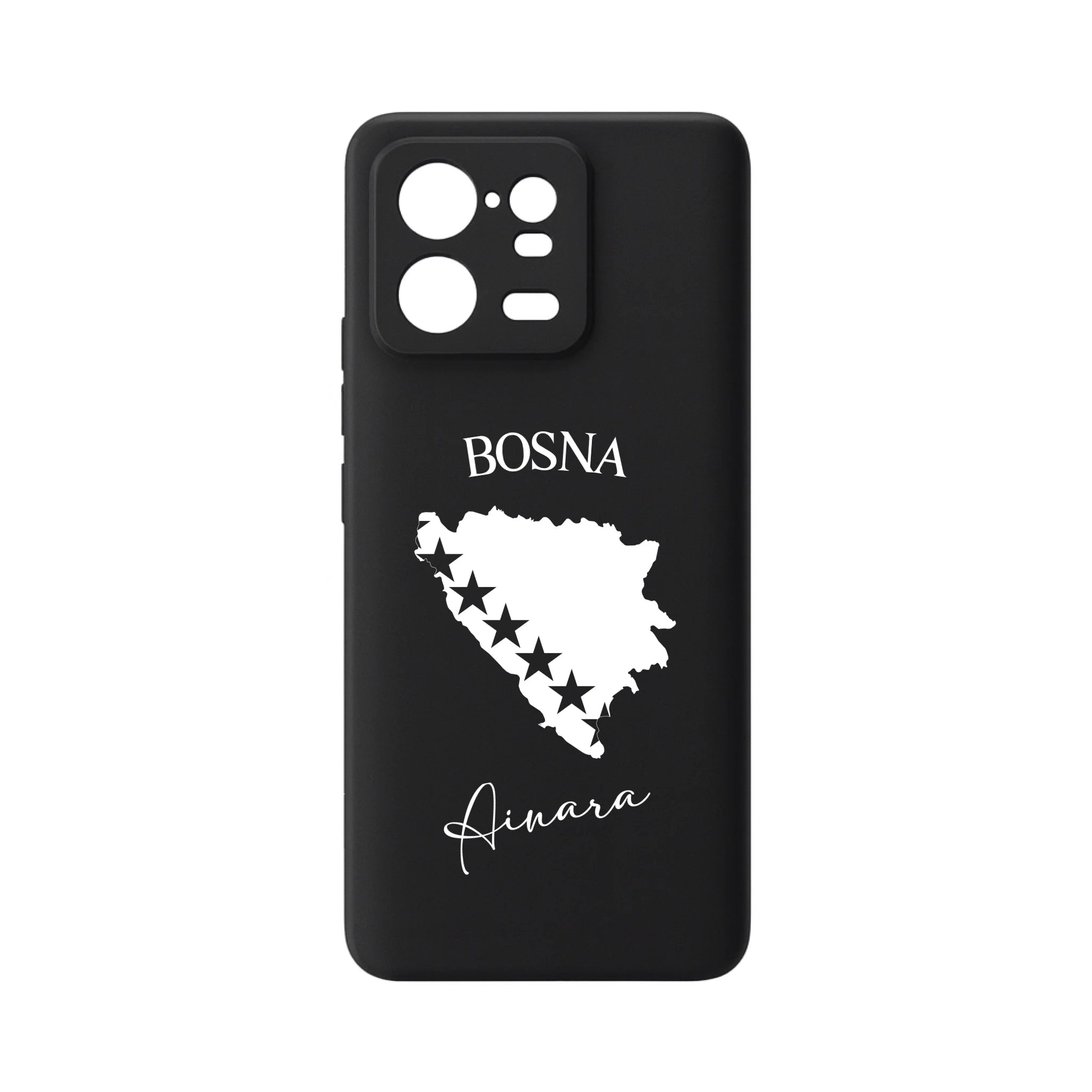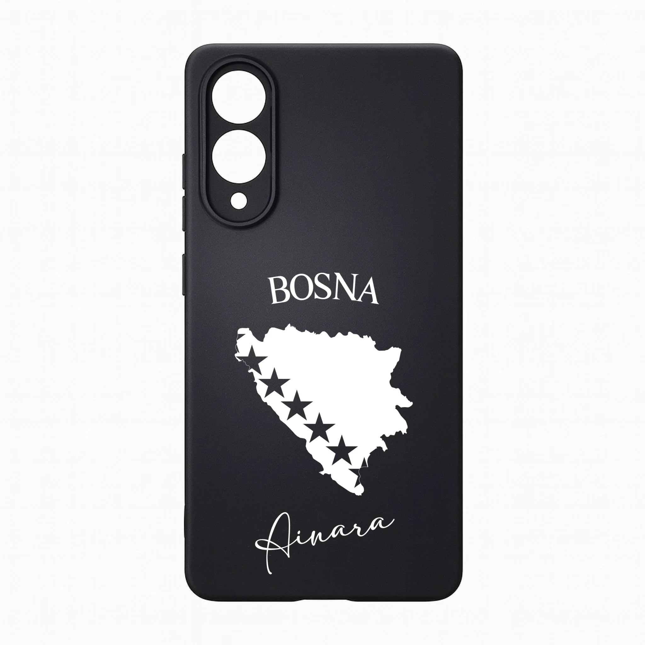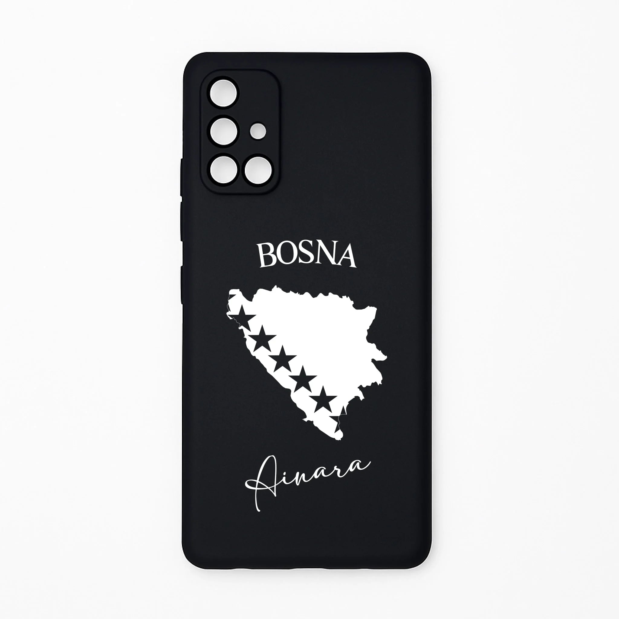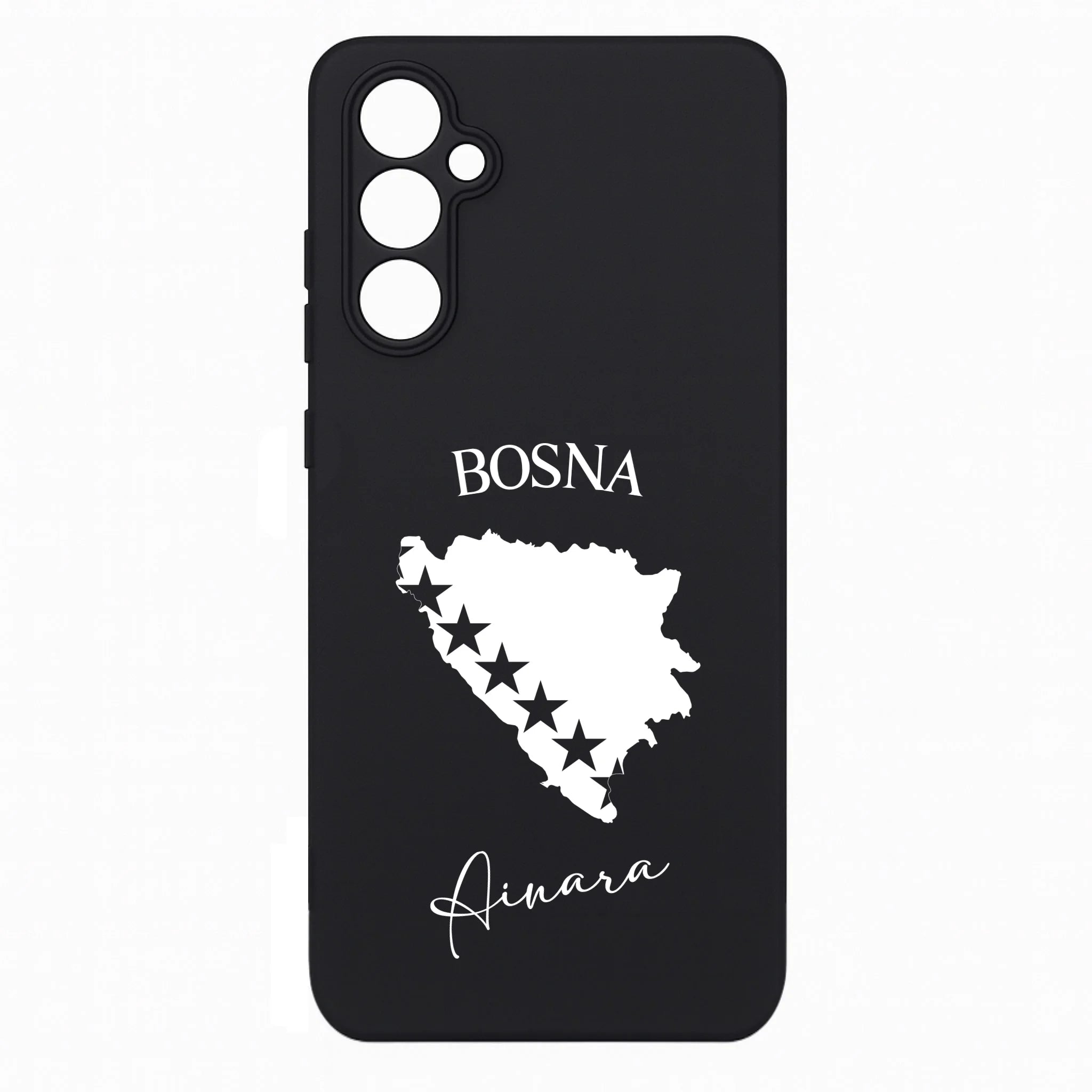 Produktbeschreibung: Personalisierte Silikon Handyhülle mit Bosnien Umriss und Wunschname