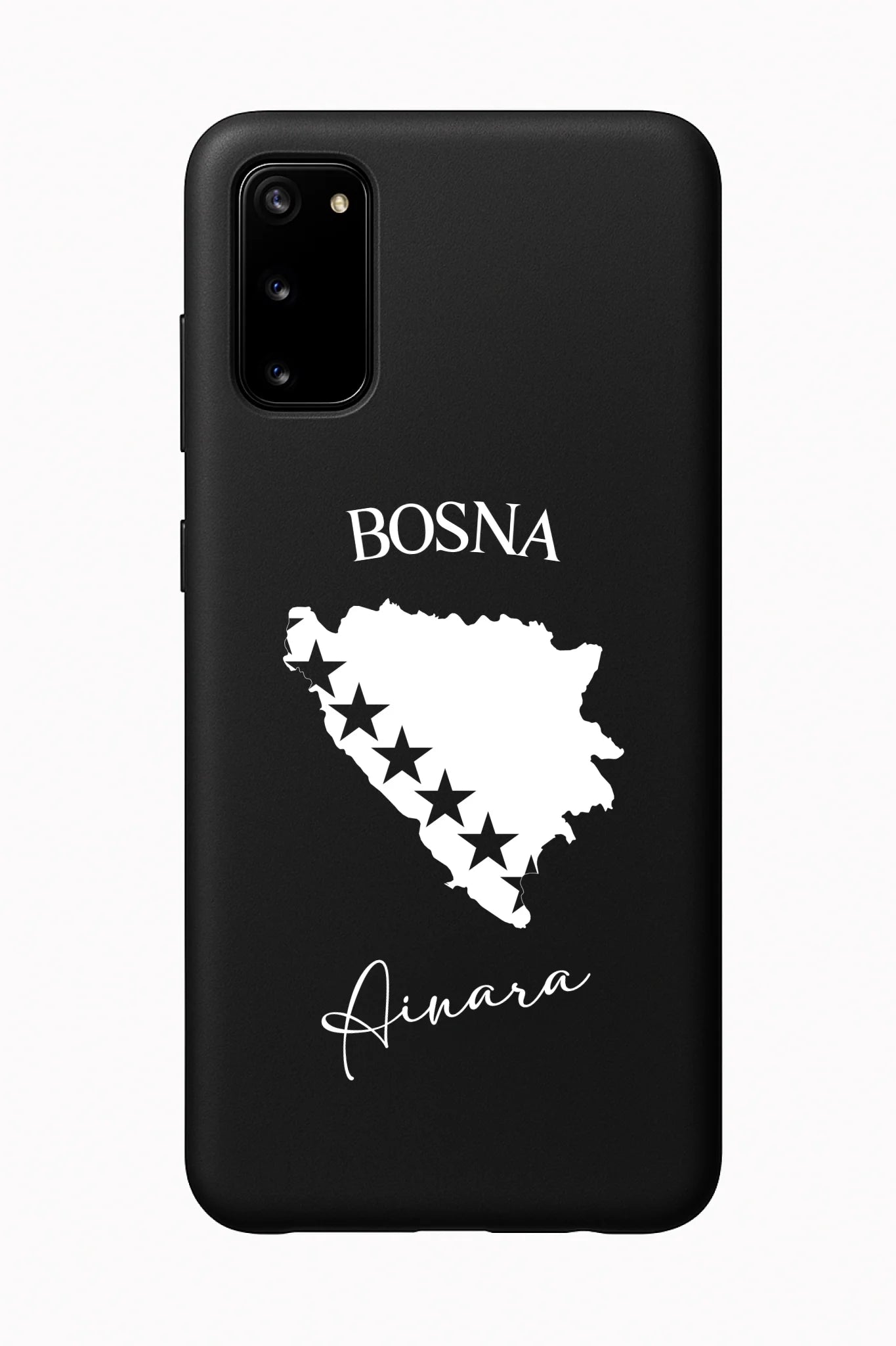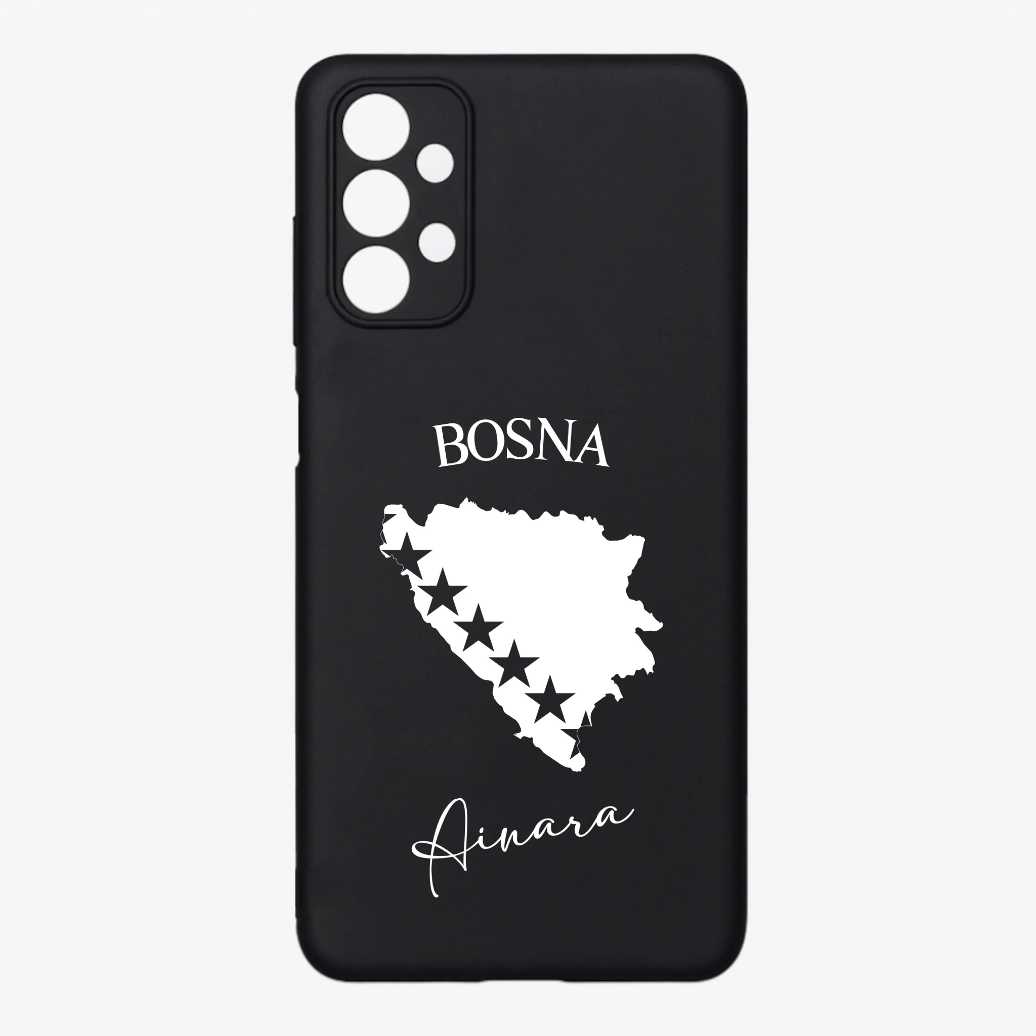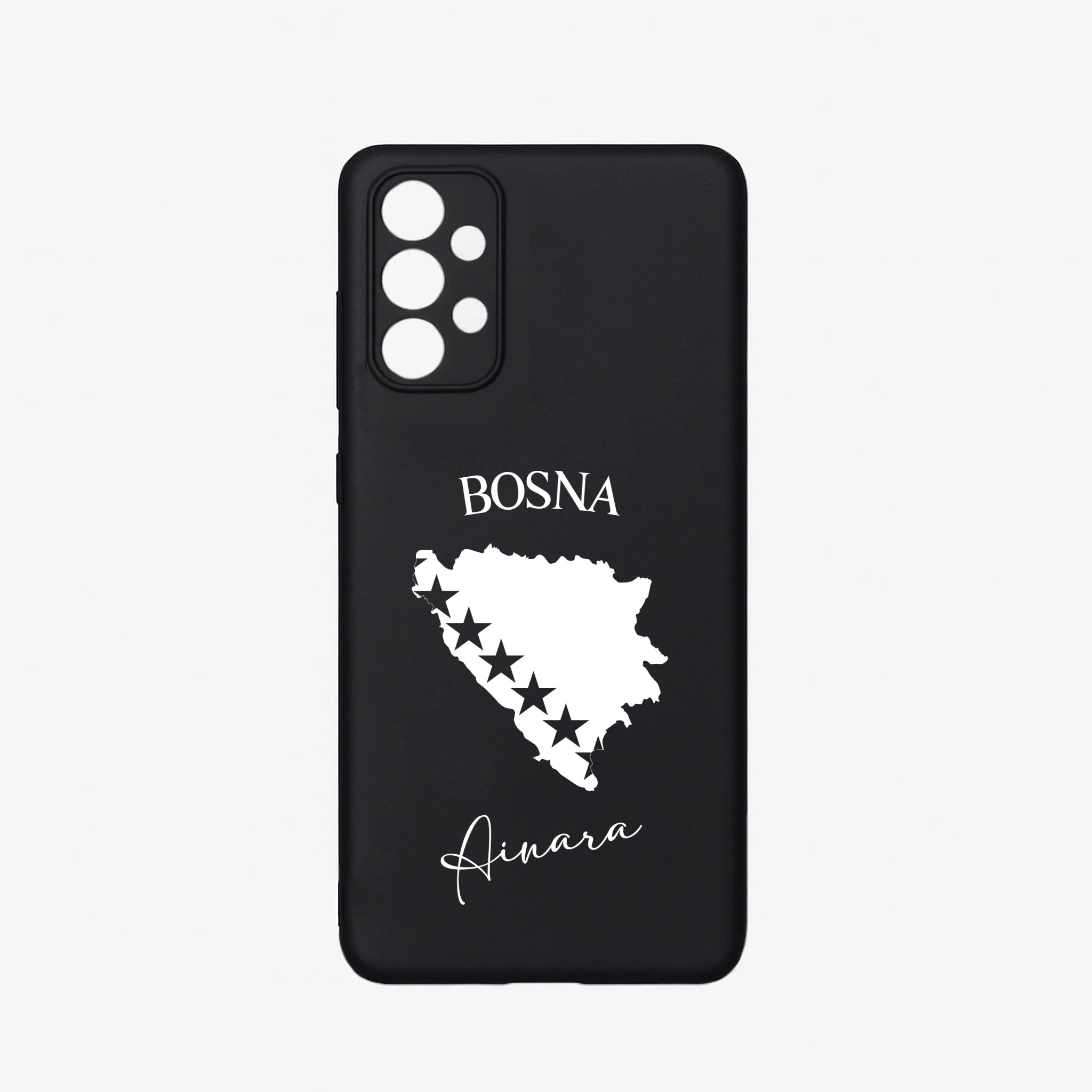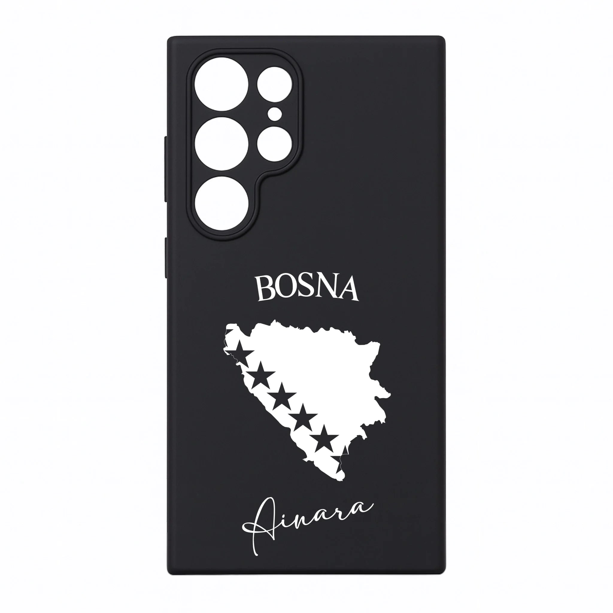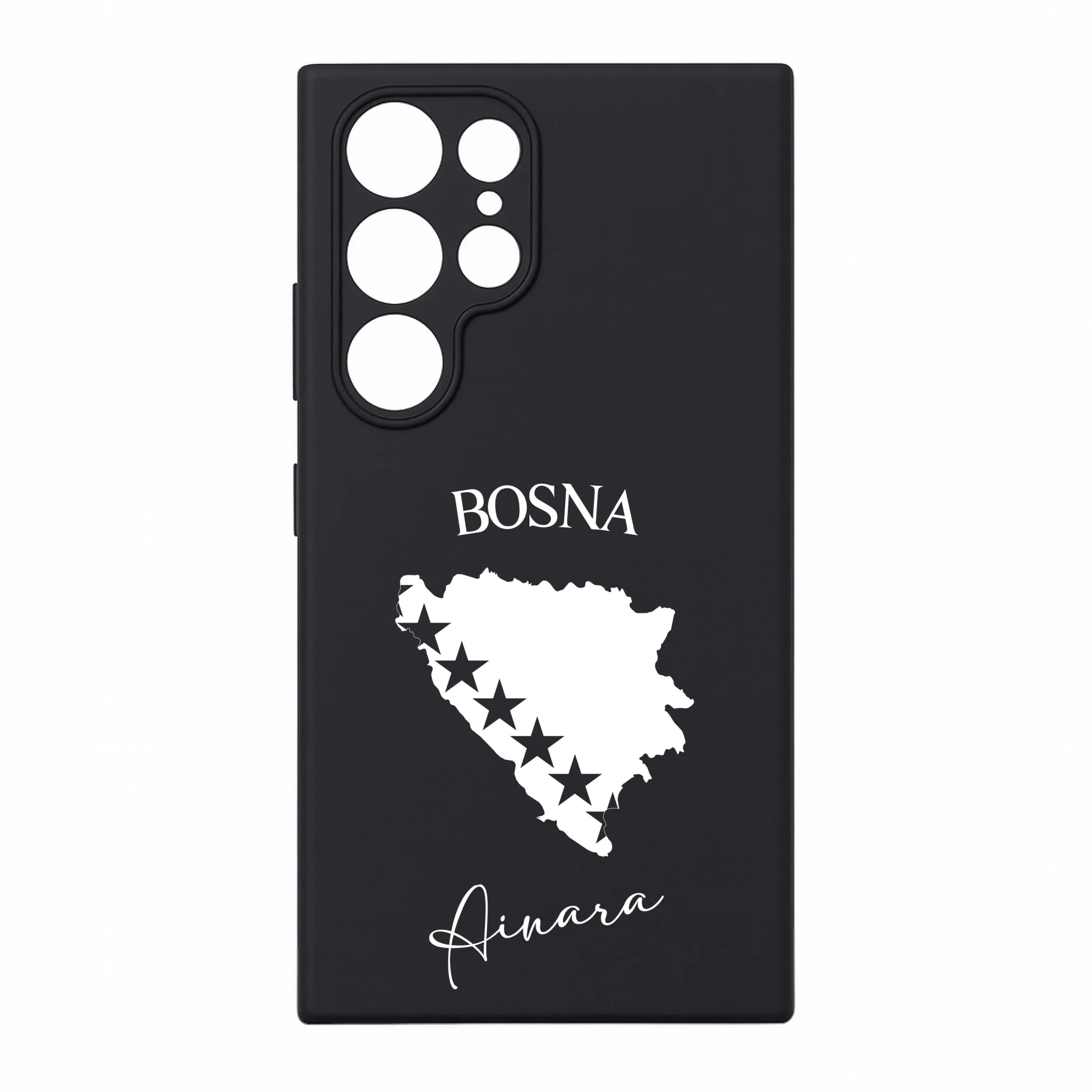 Produktbeschreibung: Personalisierte Silikon Handyhülle mit Bosnien Umriss und Wunschname