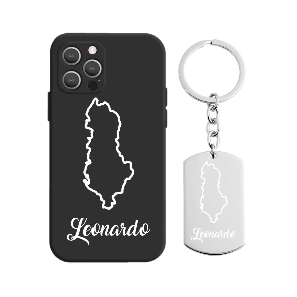 Albanien Umriss Handyhülle mit Schlüsselanhänger inkl. Wunschname