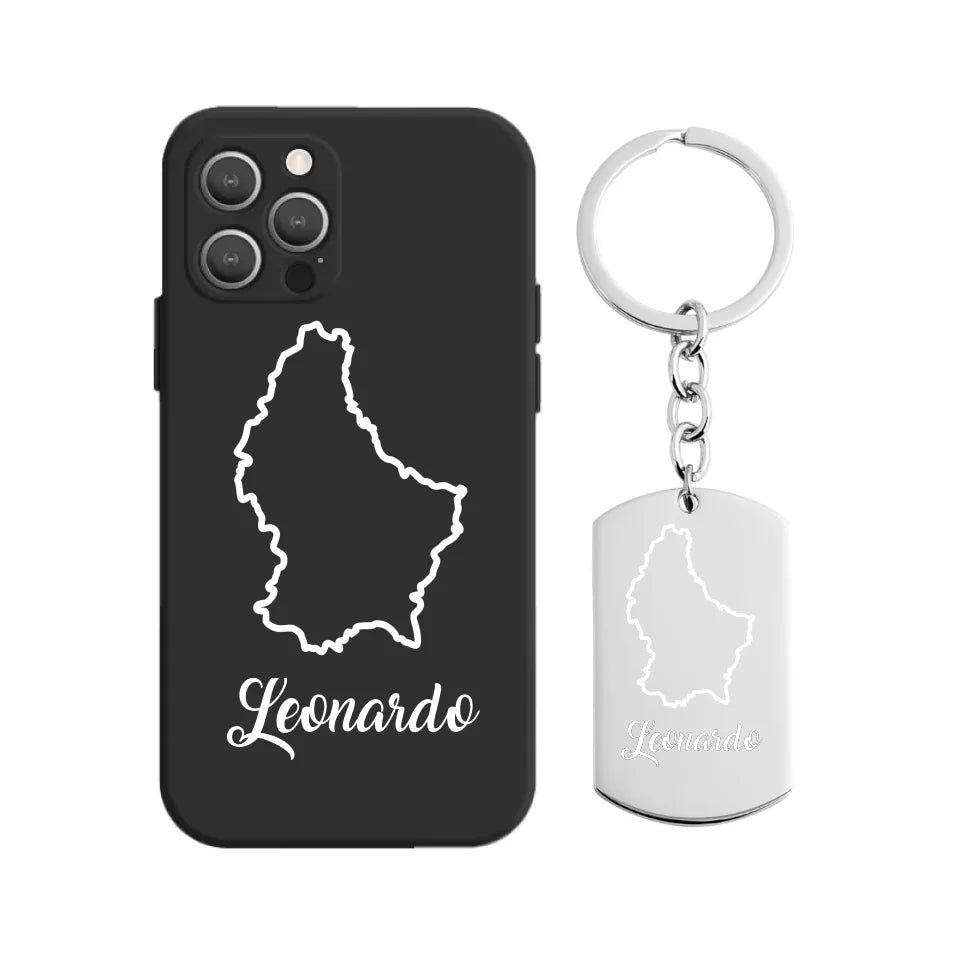 Luxemburg Umriss Handyhülle mit Schlüsselanhänger inkl. Wunschname