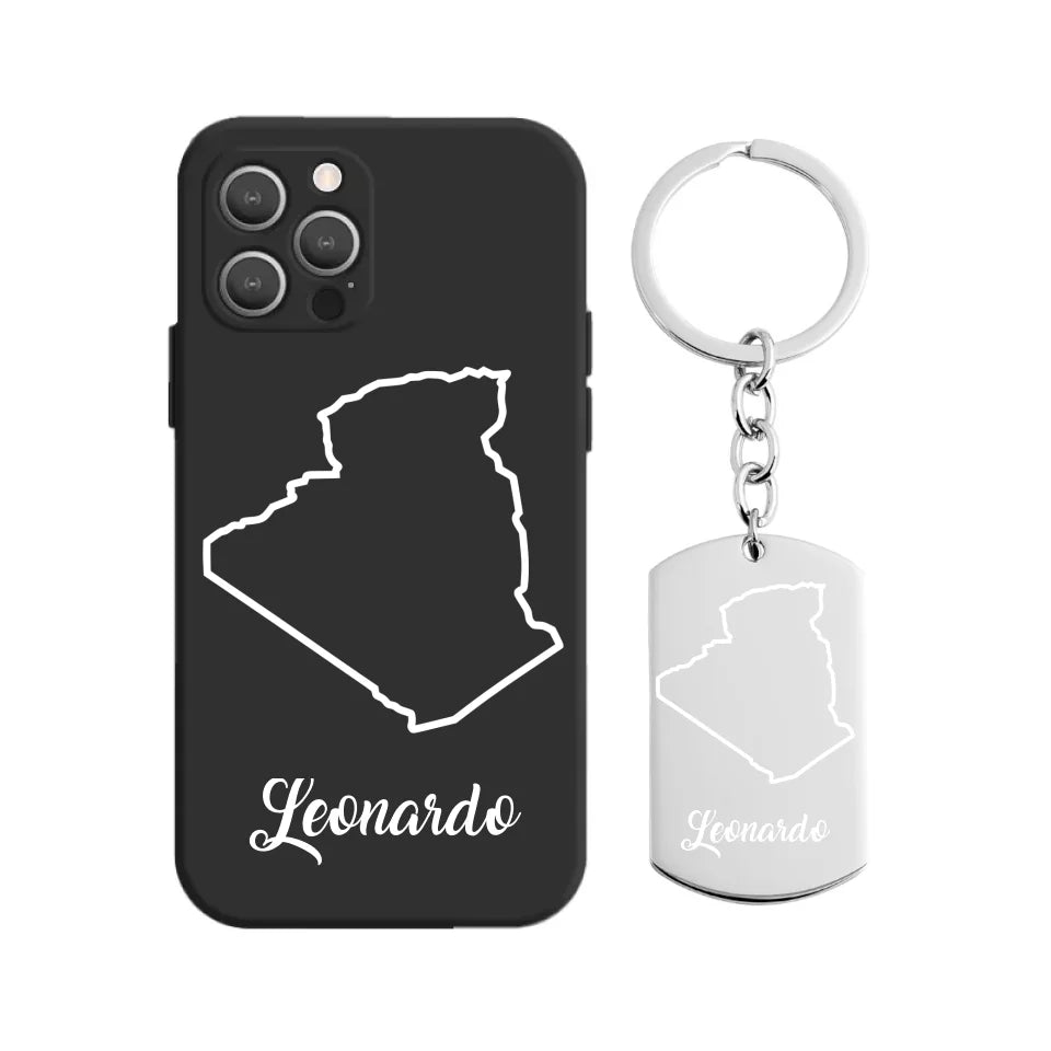 Algerien Umriss Handyhülle mit Schlüsselanhänger inkl. Wunschname
